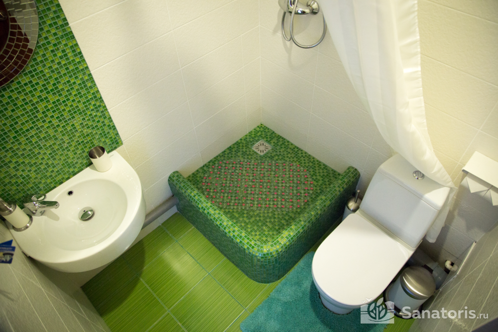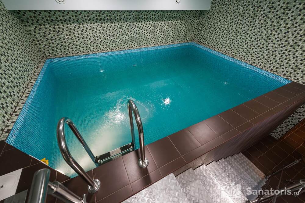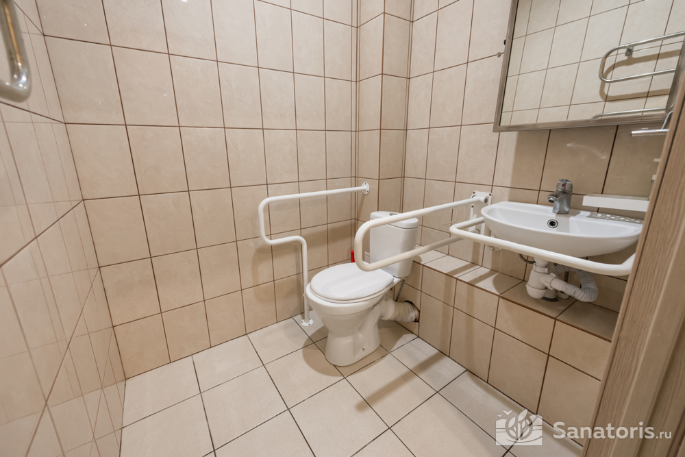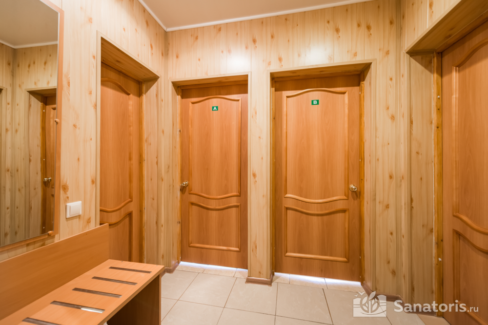 В основном корпусе предусмотрено два лифта. Он соединяется с другими зданиями теплым переходом. Так же для постояльцев функционирует центр диагностики и лечения, водолечебница, грязелечебница, ресторан, кафе и зал с тренажерами.
