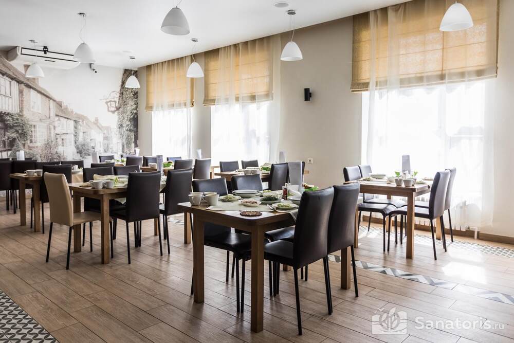 Питание гостей осуществляется в просторной столовой. Всего 4 приема пищи в день. Вечером обязательно подают кисломолочные продукты. Все блюда готовятся исключительно из натуральных продуктов. Так же в рационе присутствуют свежие овощи и фрукты. Питание играет очень важную роль в оздоровлении и лечении. На базе санатория есть диетолог, который может составить индивидуальную диету.
