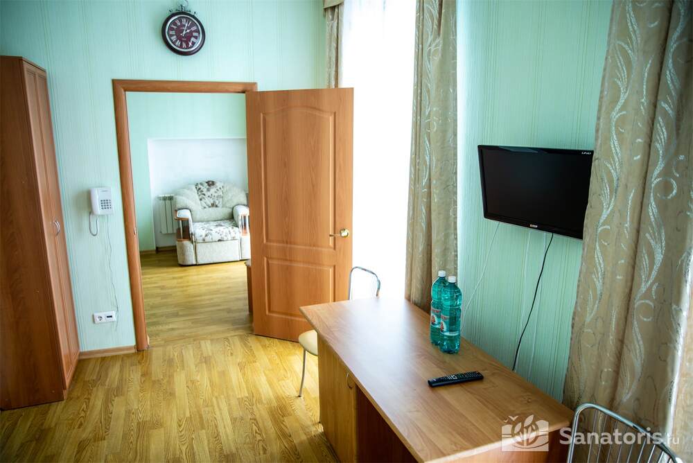 Проживание постояльцев осуществляется в современном жилом корпусе. В каждом номере есть ванная комната, санузел, спутниковое телевидение, электрический чайник и фен.