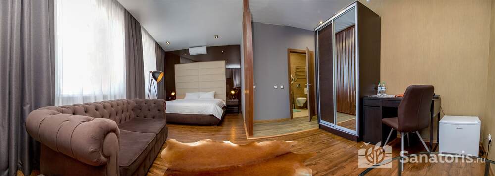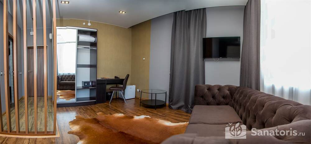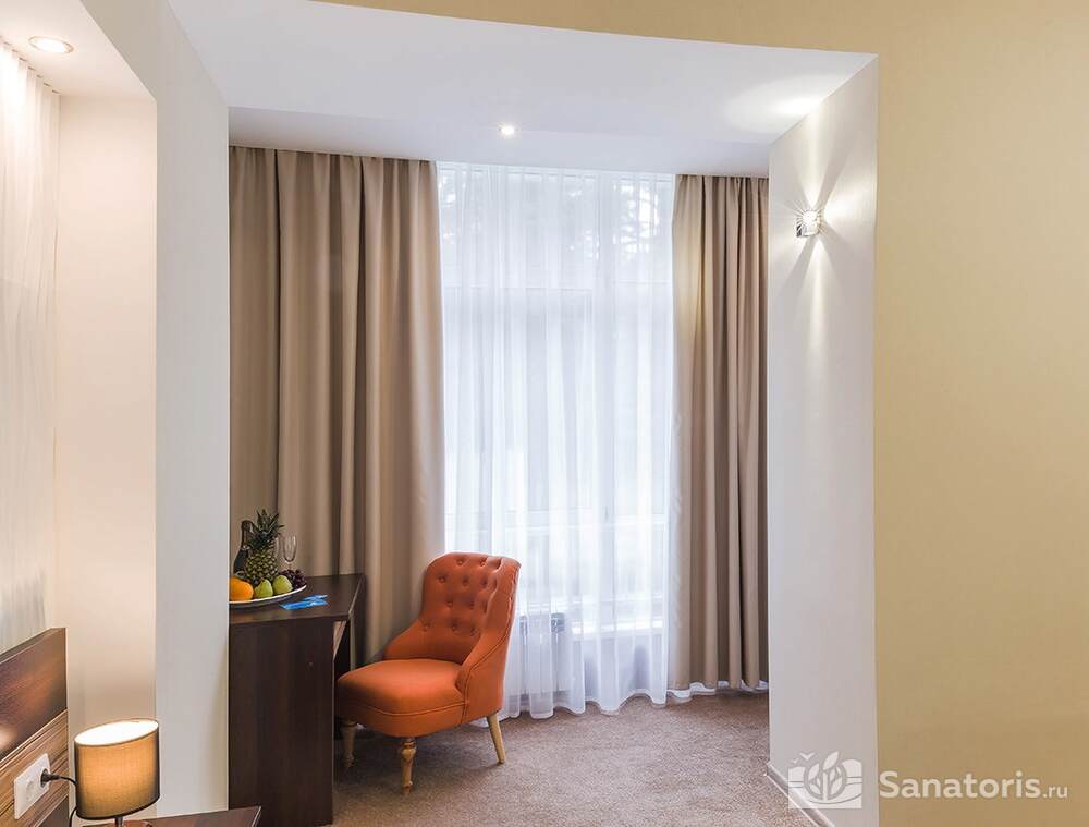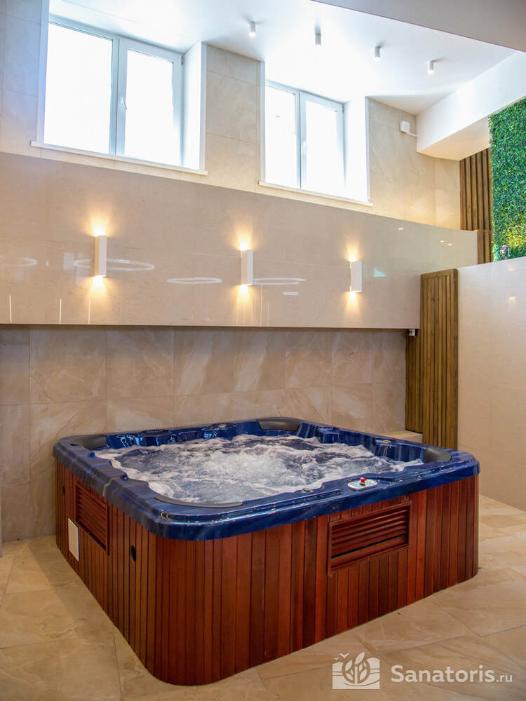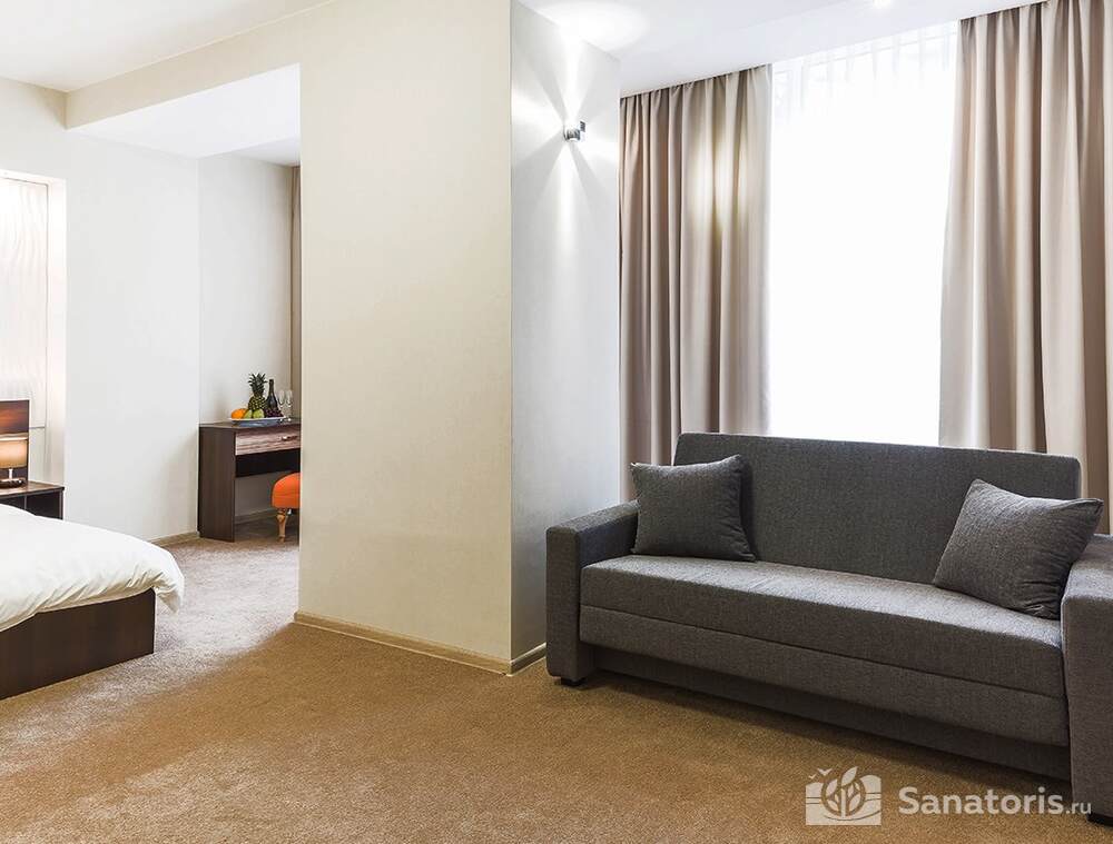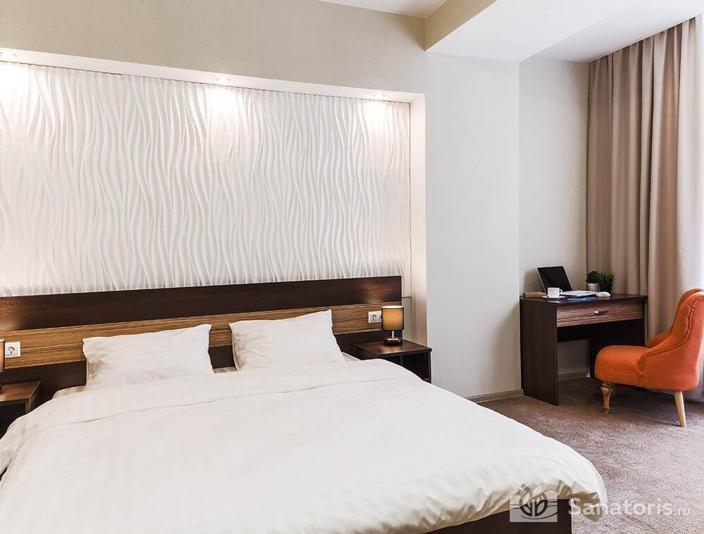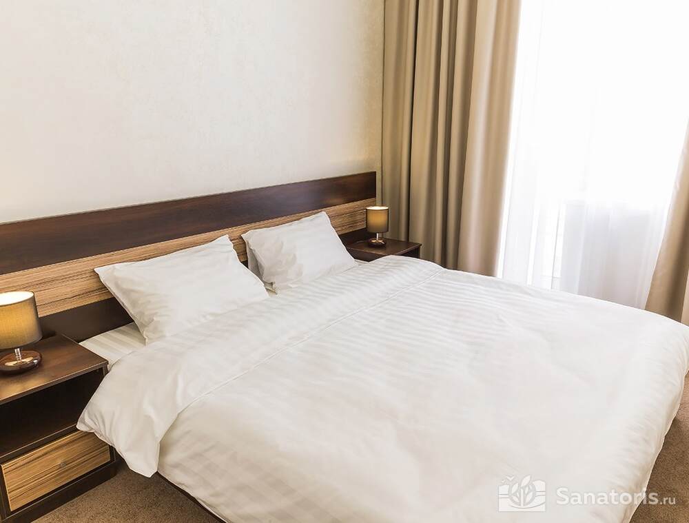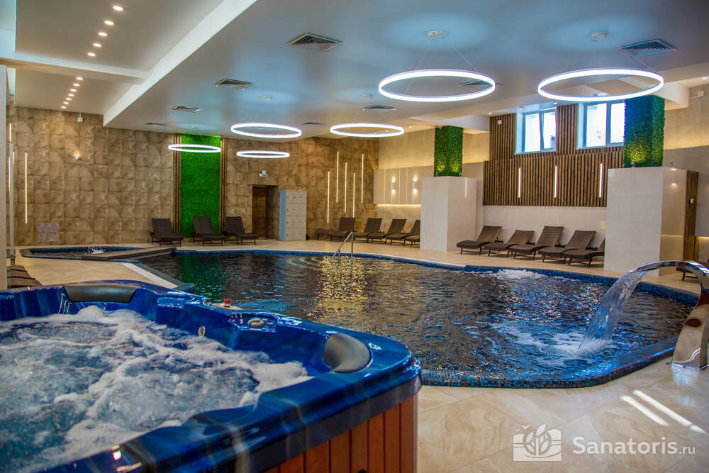 Для проживания гостей предусмотрен спальный корпус на 5 этажей, леченый центр на 3 этажа, банкетный центр на 3 этажа. Гости питаются в шикарном ресторане. Шеф-повар радует туристов авторскими блюдами из натуральных продуктов. Кроме этого есть банкетный зал, собственная пекарня. Гости отеля могут посетить зал с тренажерами, спа-салон, аквапарк, хамам и сауну.