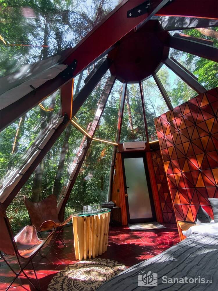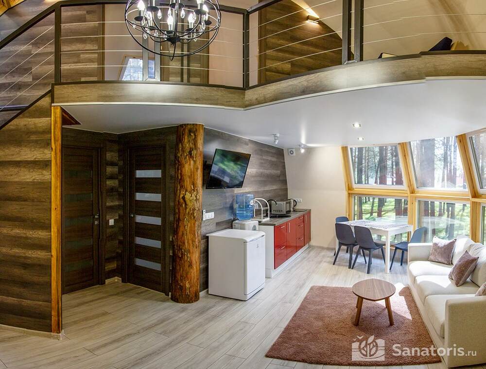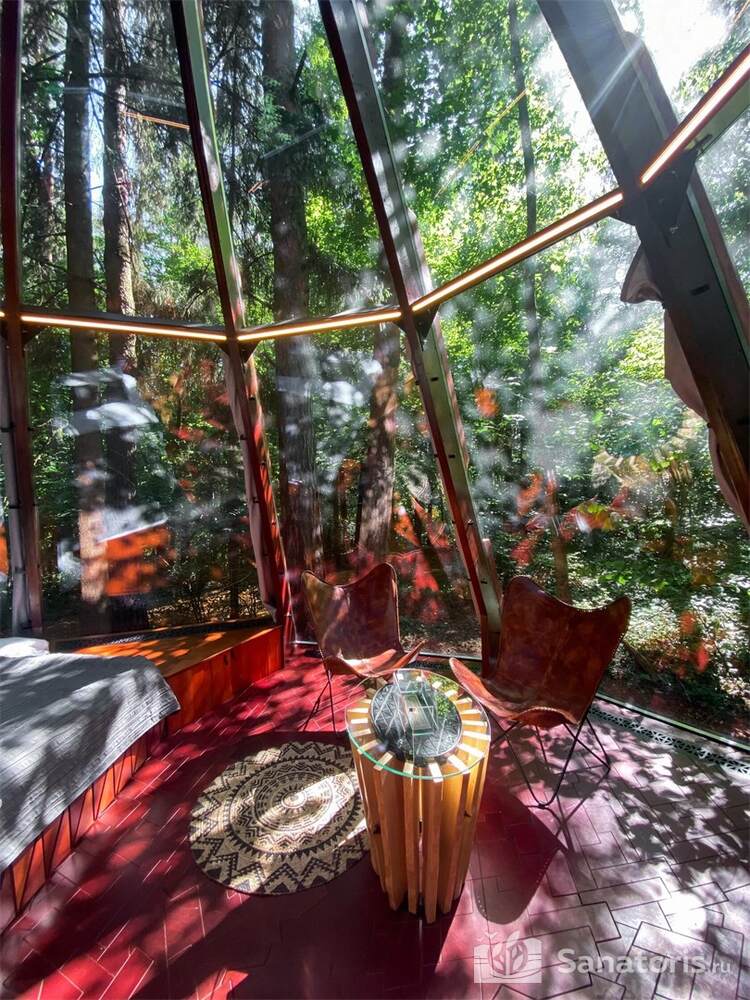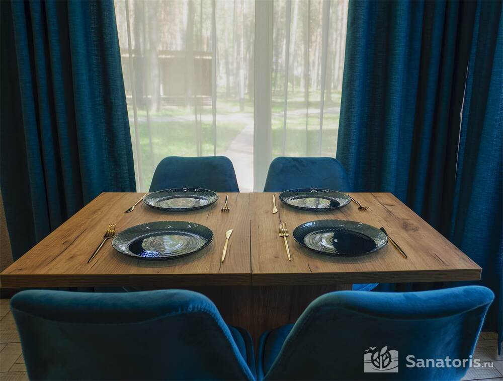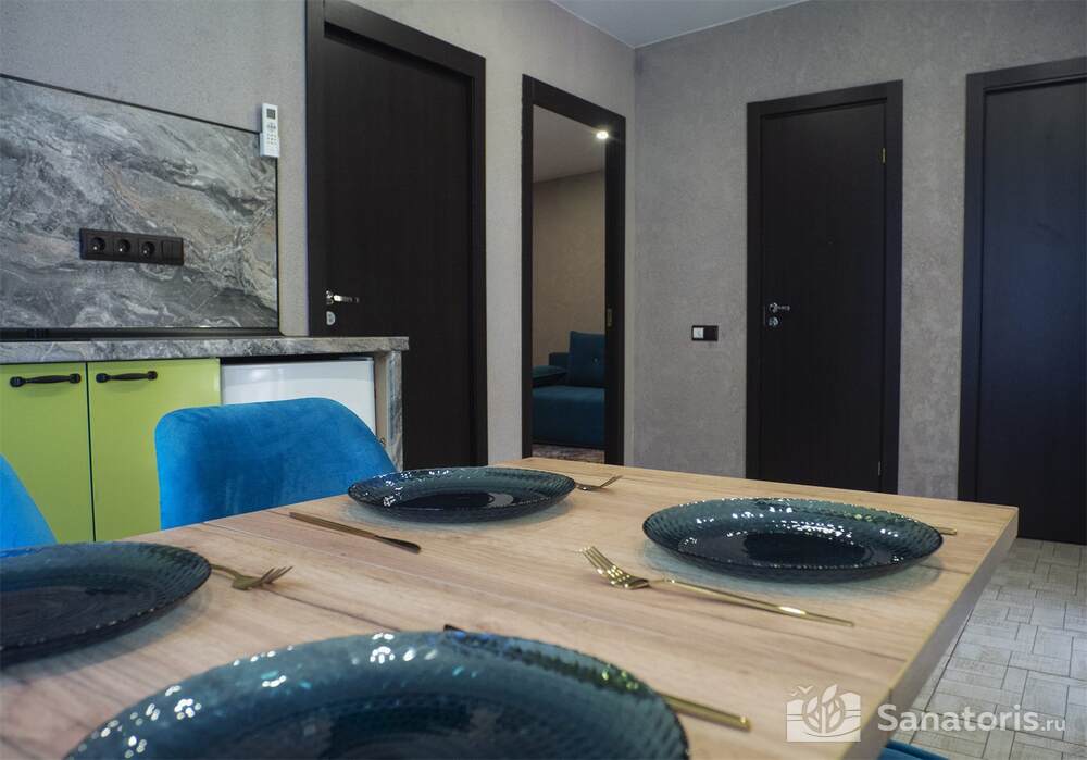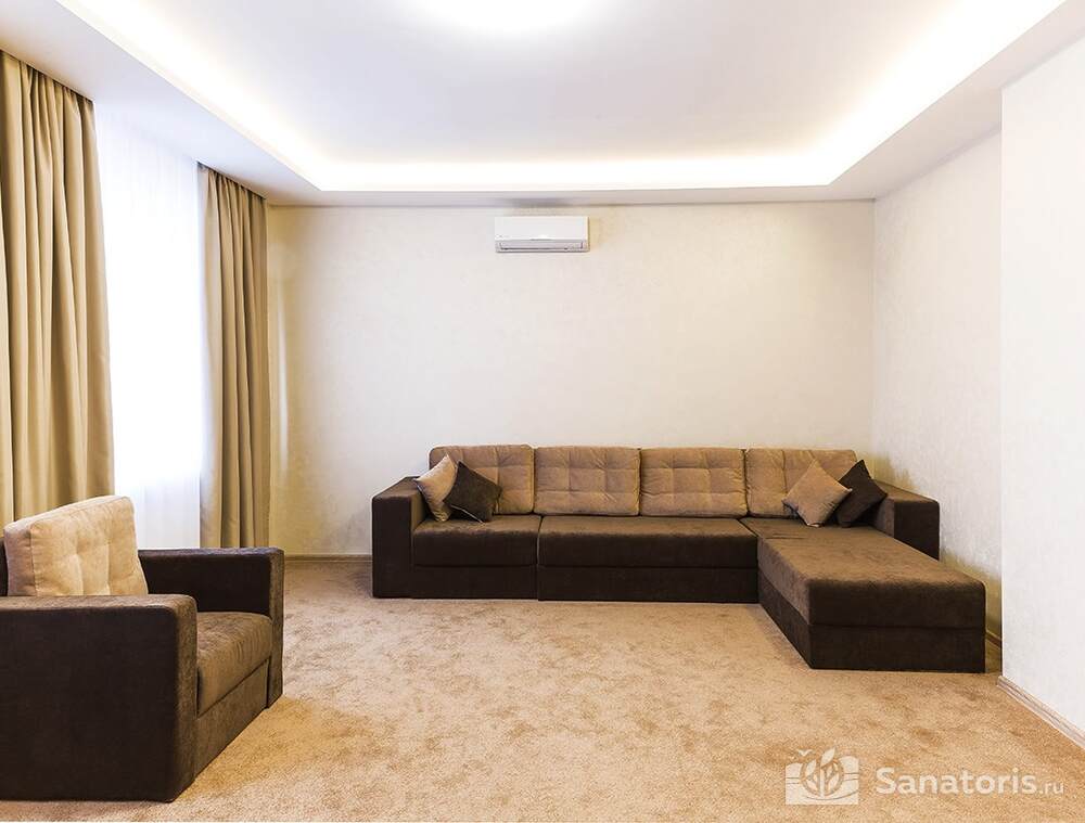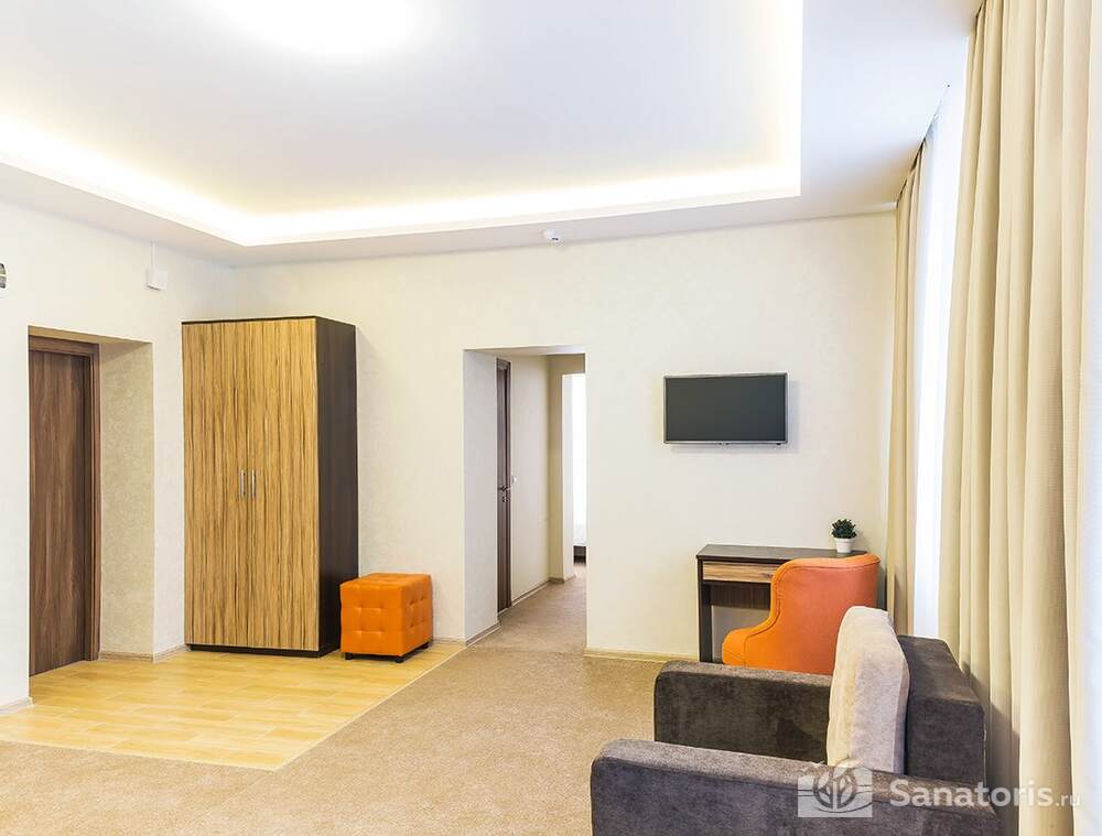 Для проживания гостей предусмотрен спальный корпус на 5 этажей, леченый центр на 3 этажа, банкетный центр на 3 этажа. Гости питаются в шикарном ресторане. Шеф-повар радует туристов авторскими блюдами из натуральных продуктов. Кроме этого есть банкетный зал, собственная пекарня. Гости отеля могут посетить зал с тренажерами, спа-салон, аквапарк, хамам и сауну.