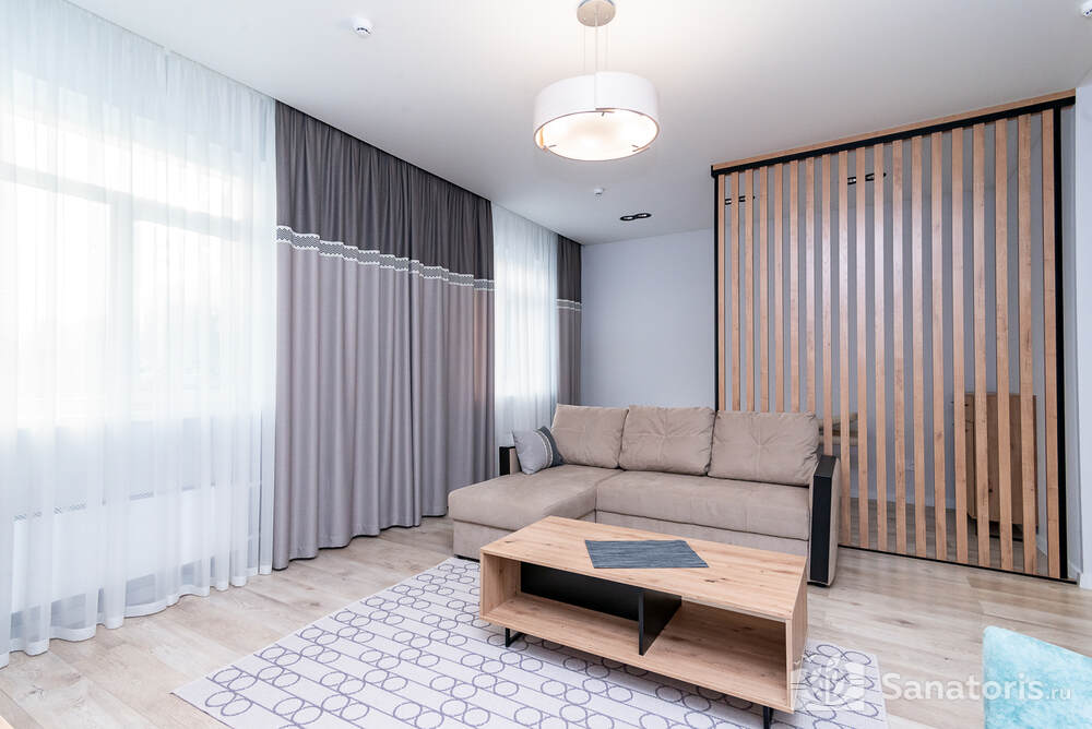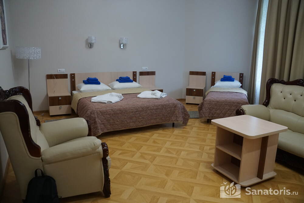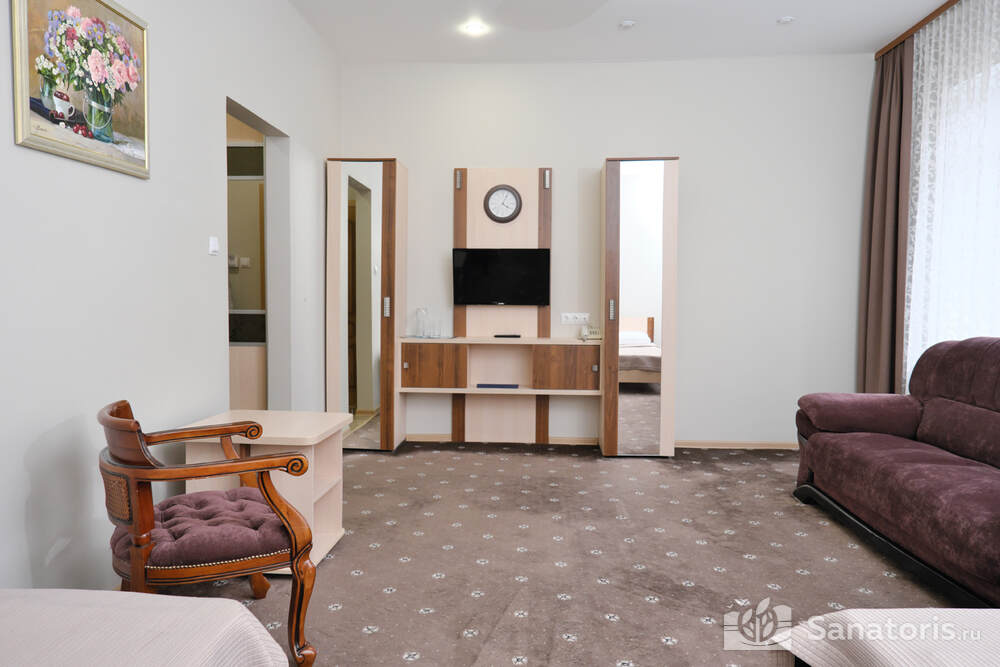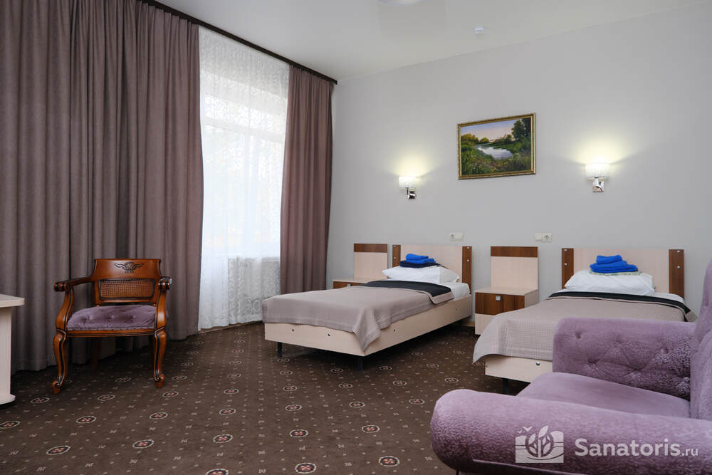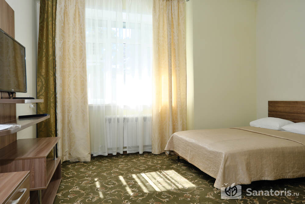 Номерной фонд состоит из 104 комфортных комнат 5-ти категорий. В распоряжении гостей 2 бассейна и более 6 Га соснового бора, а также 16 лечебных программ, включая голодание и курс фитолечения «Прасковья».
