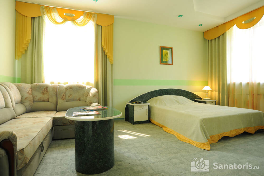 Номера санатория в основном двухместные. Они оборудованы всем необходимым, чтобы создать комфортные условия для длительного пребывания. В них имеется мебельный гарнитур, фен и электрический чайник.