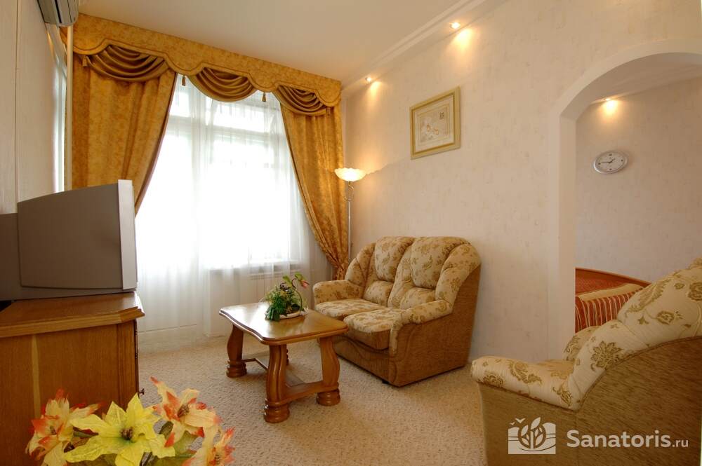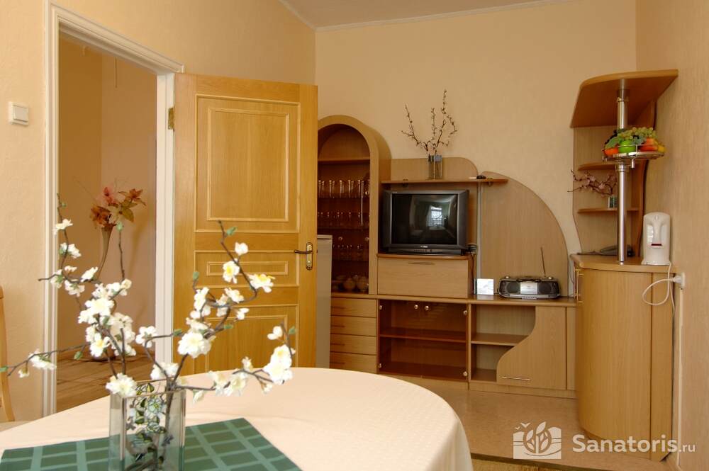 Все номера комфортные и удобные. Они обставлены мягкой мебелью и имеют необходимые атрибуты, чтобы придать отдыху и пребыванию в санатории нотку домашнего уюта. Посетить санаторий могут не только взрослые, но и семьи с детьми. Питание полноценное и разнообразное, а сам обеденный зал довольно вместительный.