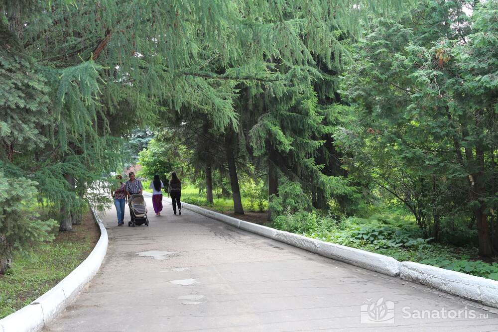 Санаторий занимает обширную площадь и представляет собой настоящий комплекс. Окружен полностью сосновым благоухающим бором, что положительно сказывается на дыхании. Он состоит из четырех жилых корпусов, каждый из которых включает три этажа.