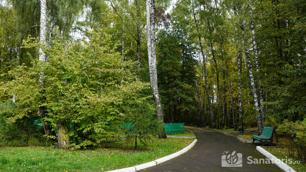 Ухоженная территория здравницы сразу бросается в глаза. Первым, что увидят туристы, будет зеленый парк. Здесь высажены уникальные цветы и кусты, которые источают невероятные ароматы. В тени сосен обустроены удобные скамейки для отдыха, а так же беседки из натурального дерева.