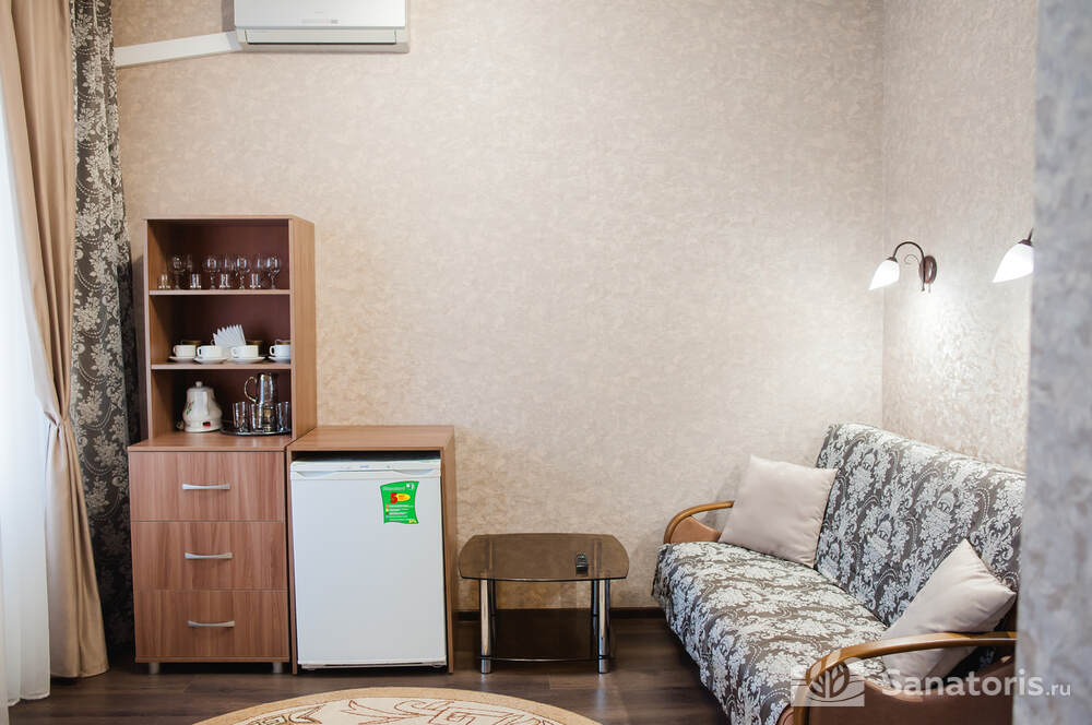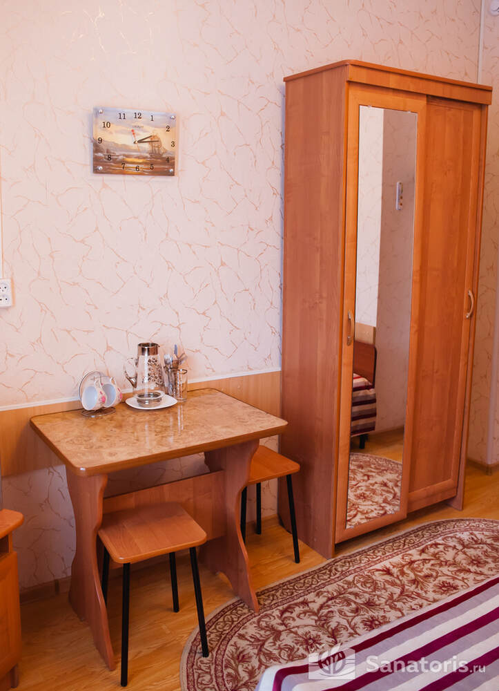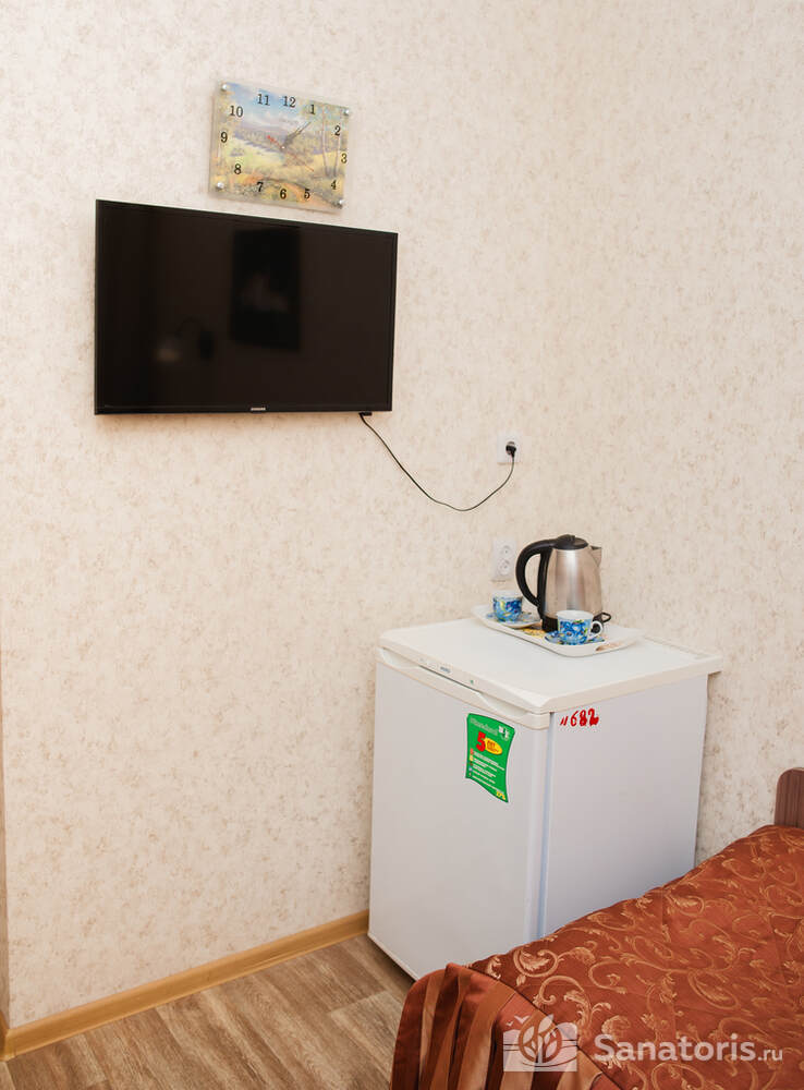 Питание в санатории 3-х разовое по системе меню-заказ. В летнее время работает кафе рядом с фонтаном «Лесная сказка». Огромный выбор прохладительных напитков и мороженого, нежнейшей выпечки станет отличным решением для перекуса.