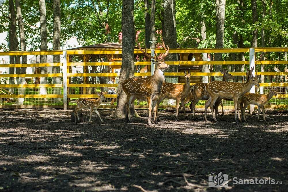 Для удобства гостей на территории центра имеются уютные беседки, спортивные площадки для игры в волейбол и баскетбол, футбольное поле, терренкуры, детская игровая площадка и мини-зоопарк, где можно насладиться общением с животными и птицами.
