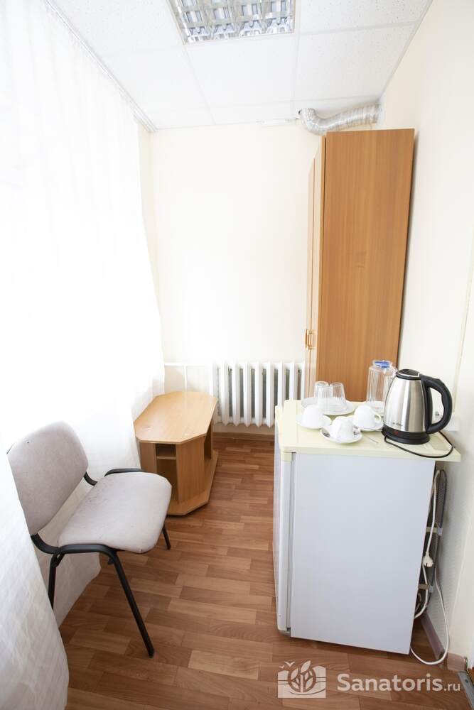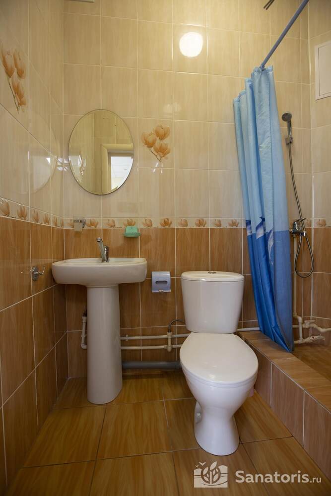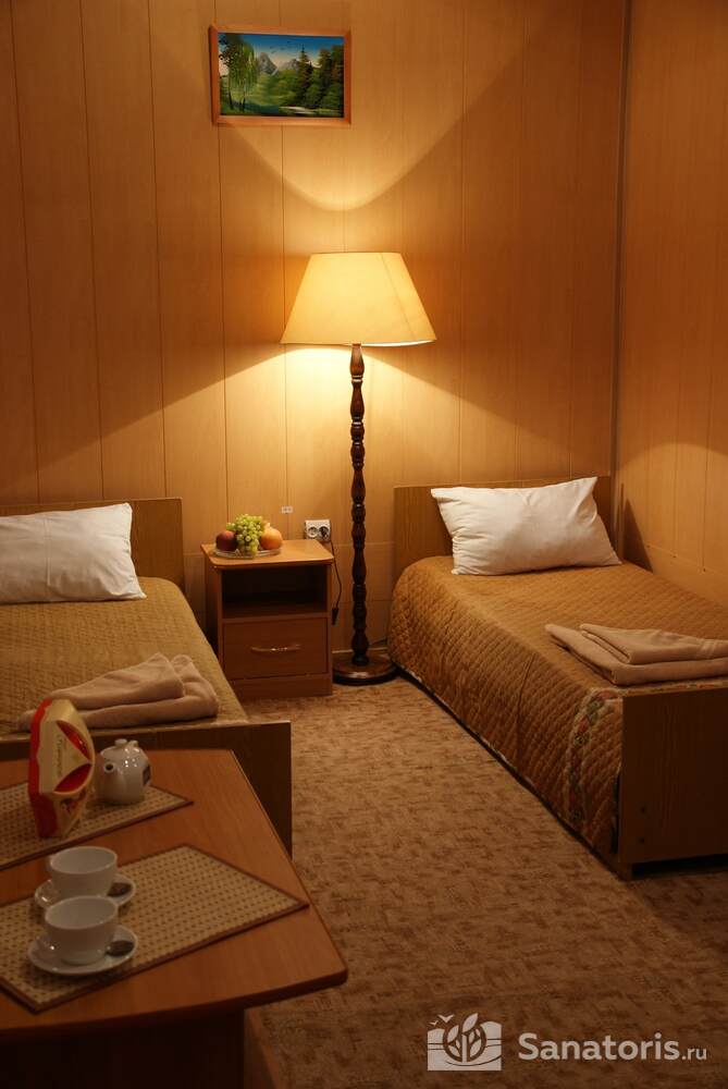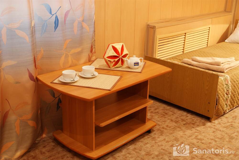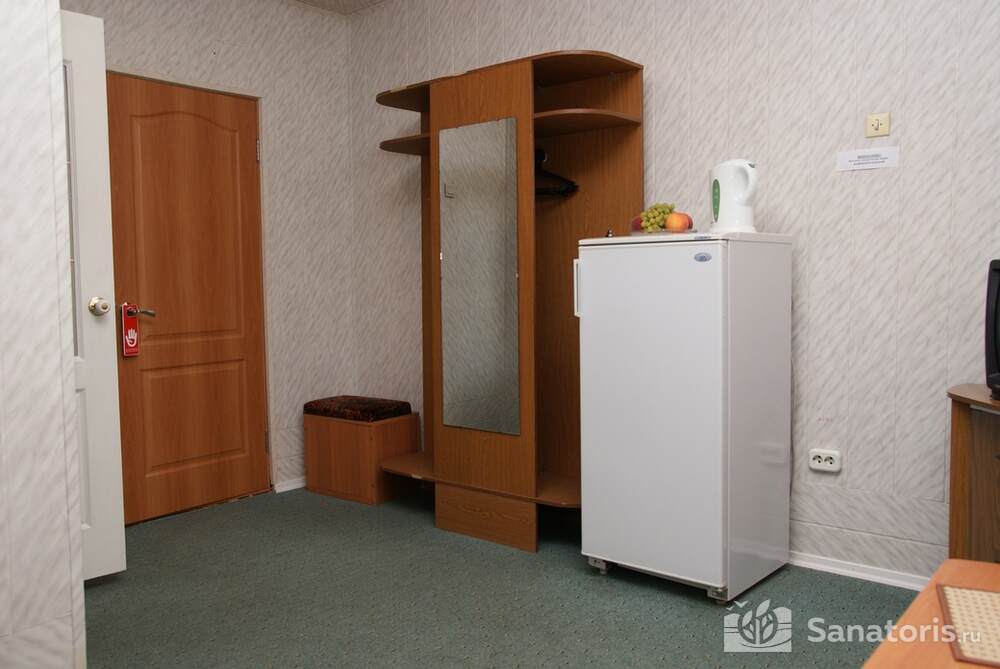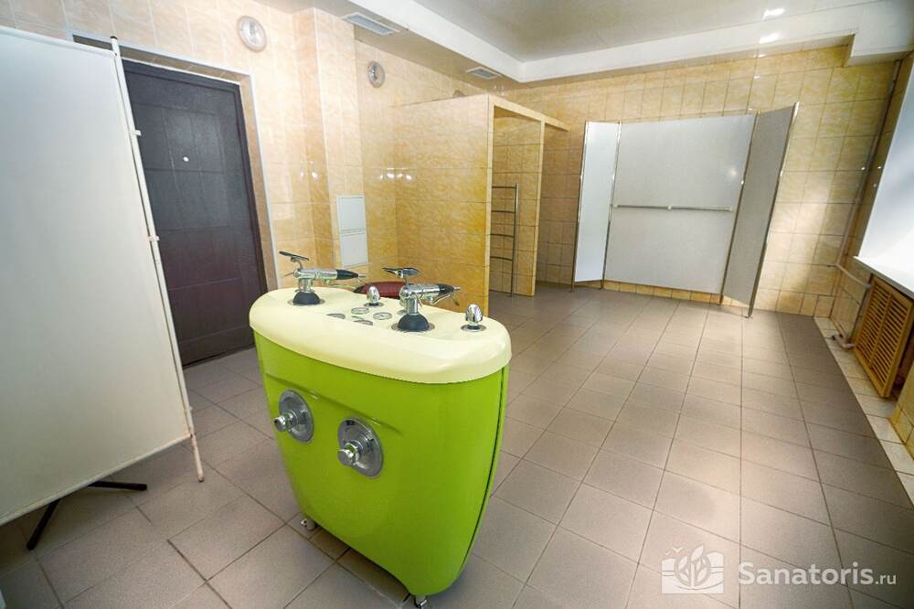 Курортное здание построено по новому проекту. Внутри корпуса 4 этажа. Здесь есть много лечебных кабинетов, где проводятся оздоровительные процедуры. Так же спальные уютные номера повышенной комфортности. В каждом из них есть ванная, душ и туалет.