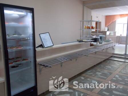 Гости ходят кушать в столовую. Между корпусами санатория есть теплый проход. Он ведет к тренажерам, комплексной сауне и большому бассейну.