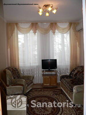 Санаторий предлагает 4 спальных корпуса для пребывания гостей. Условия проживания –максимально комфортные, приближены к домашним. Отдыхающим предлагают на выбор уютные номера, рассчитанные на одного или двух человек. Сами апартаменты могут состоять из 2 или 3 комнат с удобной обстановкой.