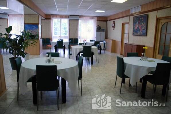Гости здравницы питаются в просторной столовой. Предоставляется комплексное питание 4 раза в день. Блюда готовятся исключительно из натуральных продуктов. Так же в рационе имеется минеральная вода из местного источника.