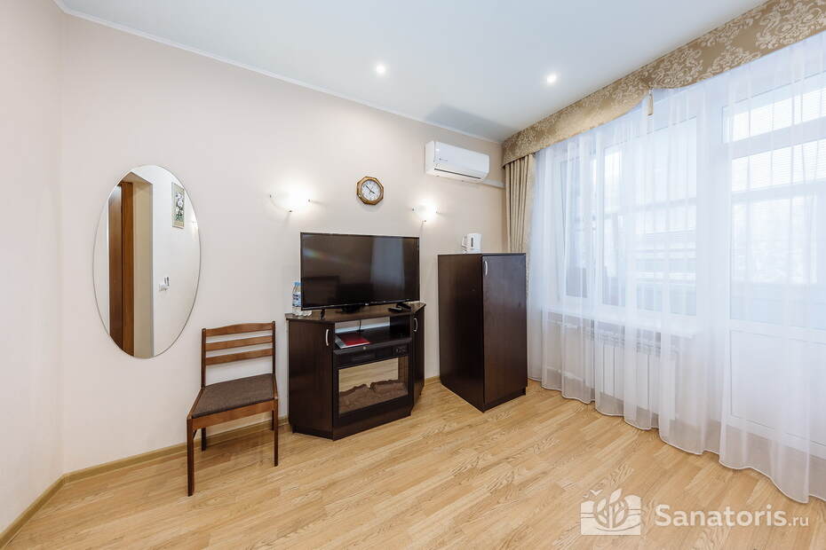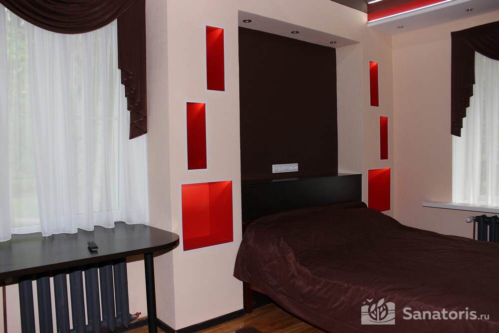 Номера санатория оборудованы всем необходимым, что упрощает отдых и пребывания в них. Питание носит диетический характер, при этом калорийность и питательность блюд позволяет насытиться и не думать о еде в течение дня. Не уступает и развлекательная программа, позволяющая отдыхающим расслабиться и поднять себе настроение.