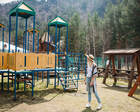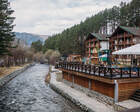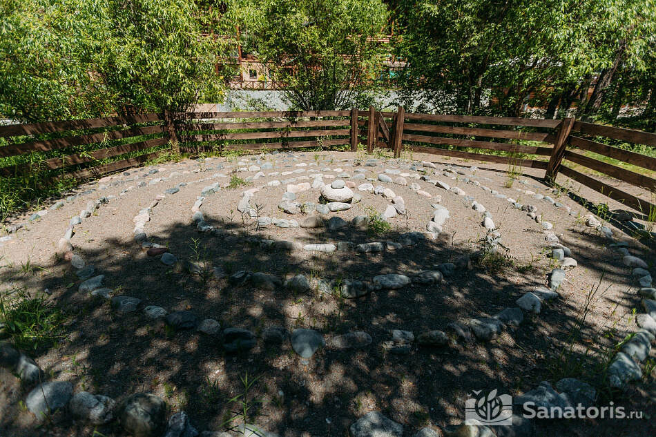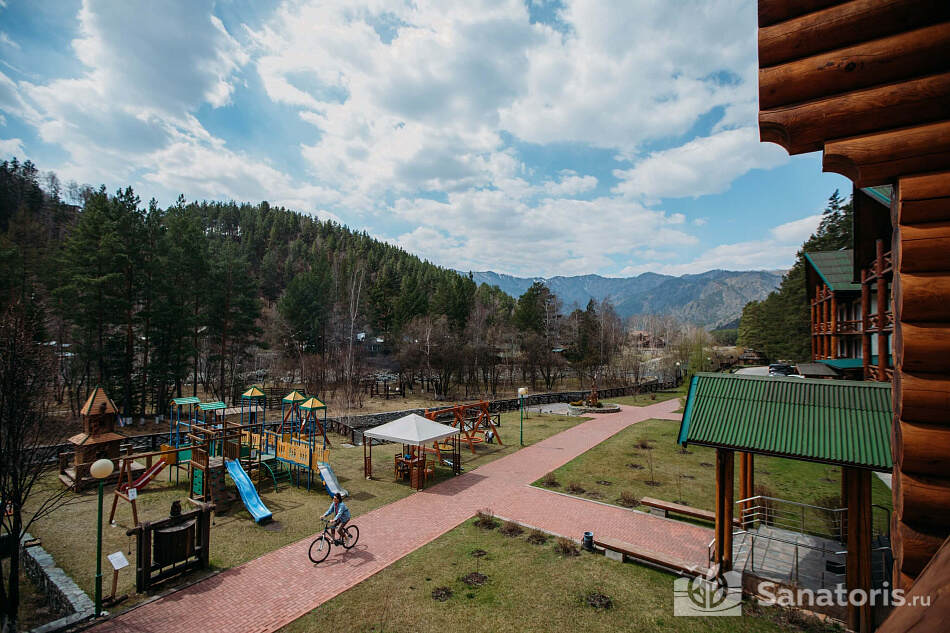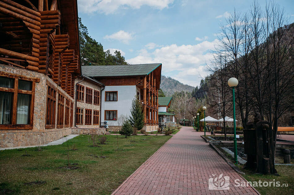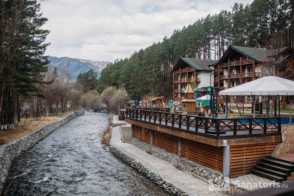 Набережная, на которой расположен санаторий, огорожена и обустроена удобными скамейками. Здесь же имеются смотровые площадки, с которых открывается потрясающий и захватывающий вид. Через реку построен мост, который соединяет островную и основную части. На острове возведена площадка, на которой можно заняться спортом и тренажеры.