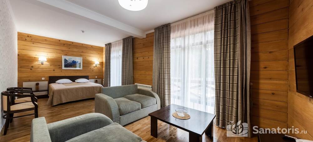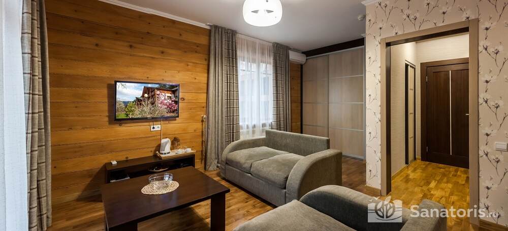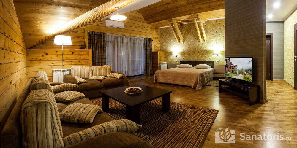 Для размещения гостей предлагается четыре корпуса. Два из них насчитывают четыре этажа и являются схожими по конструкции. Третий корпус является трехэтажным. В нем также находится центр с медицинской базой и ресторан. Оставшийся корпус называется Президентским. Он состоит из двух этажей и с остальными зданиями он соединяется с помощью крытого прохода.