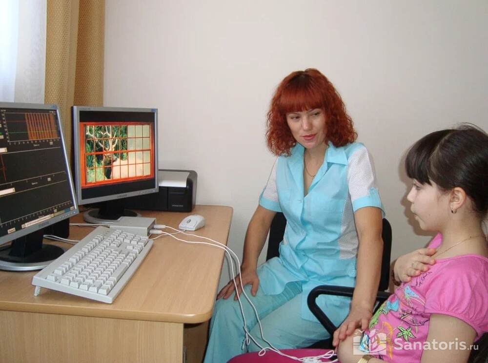 На базе санатория имеется современно оборудование для диагностики и лечения детских патологий. С маленькими пациентами работают квалифицированные специалисты с большим опытом работы.
