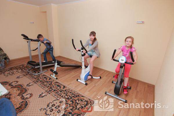 Тем отдыхающим, которые не привыкли сидеть на месте, предлагается посещение теннисного корта. Можно устроить настоящие спортивные состязания. На территории здравницы функционирует обустроенный тренажерный зал, куда можно прийти самостоятельно или выбрать занятие с тренером. Можно попариться в сауне или устроить оздоровительный заплыв в бассейне. Тем, кто все-таки предпочитает более спокойный досуг, свои двери открывает библиотека, действующая на территории санатория.