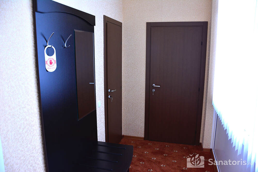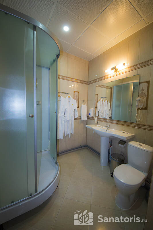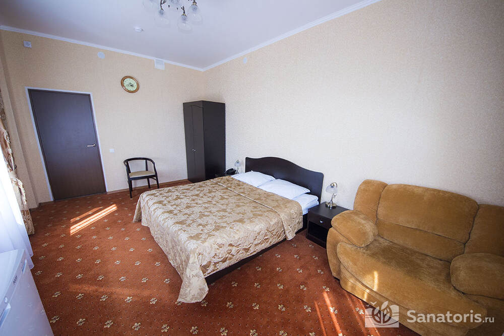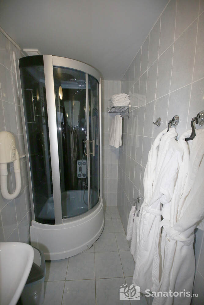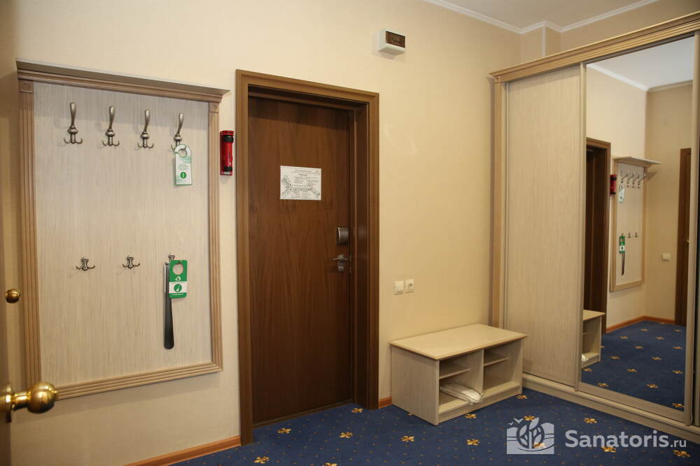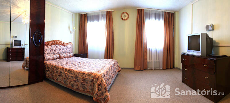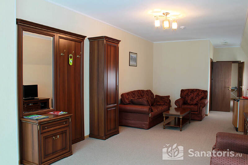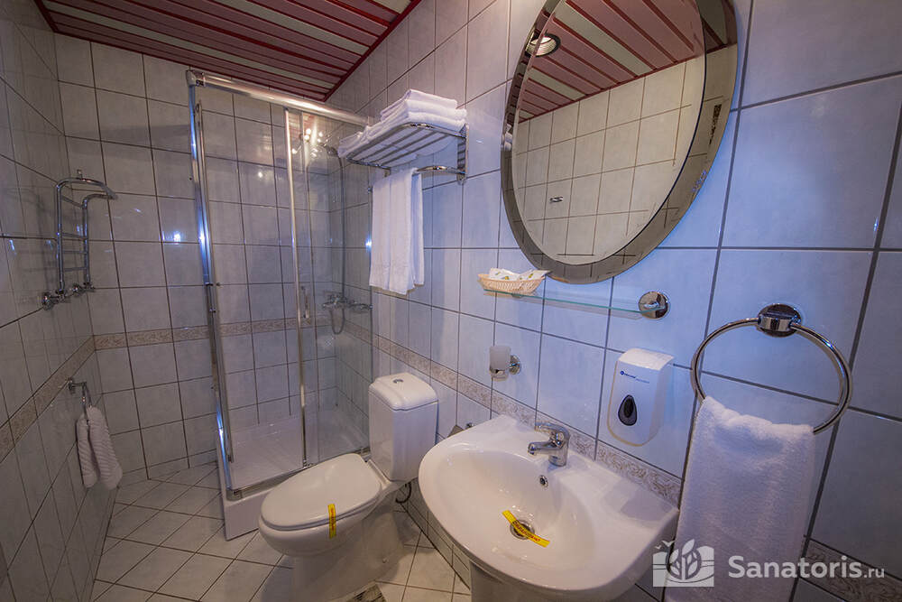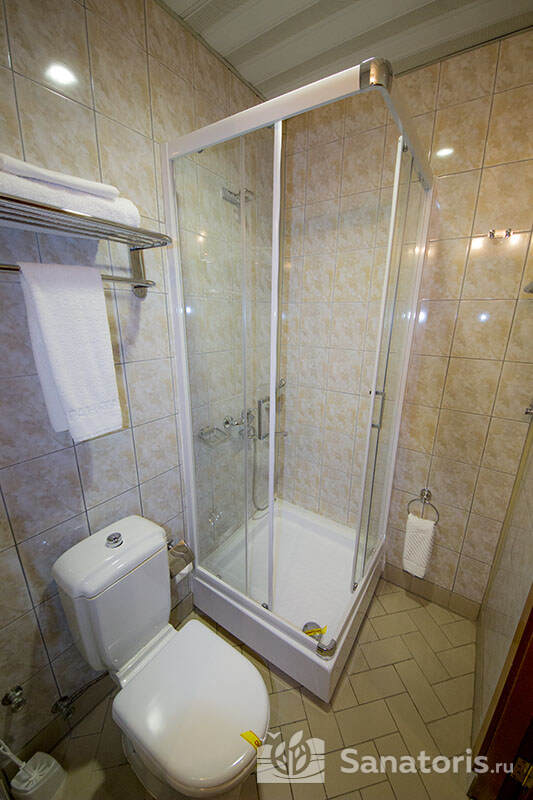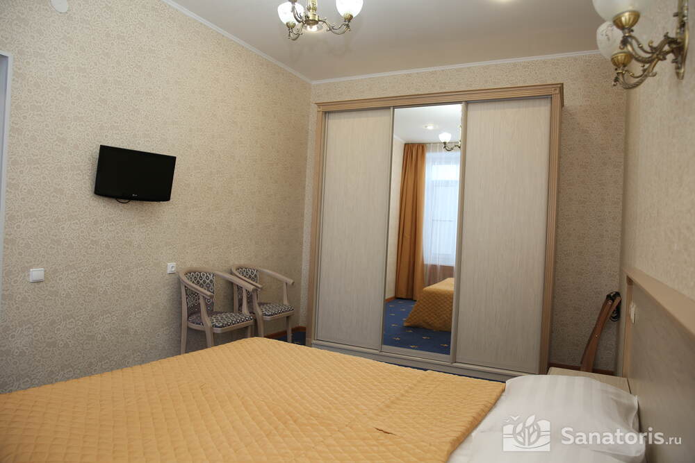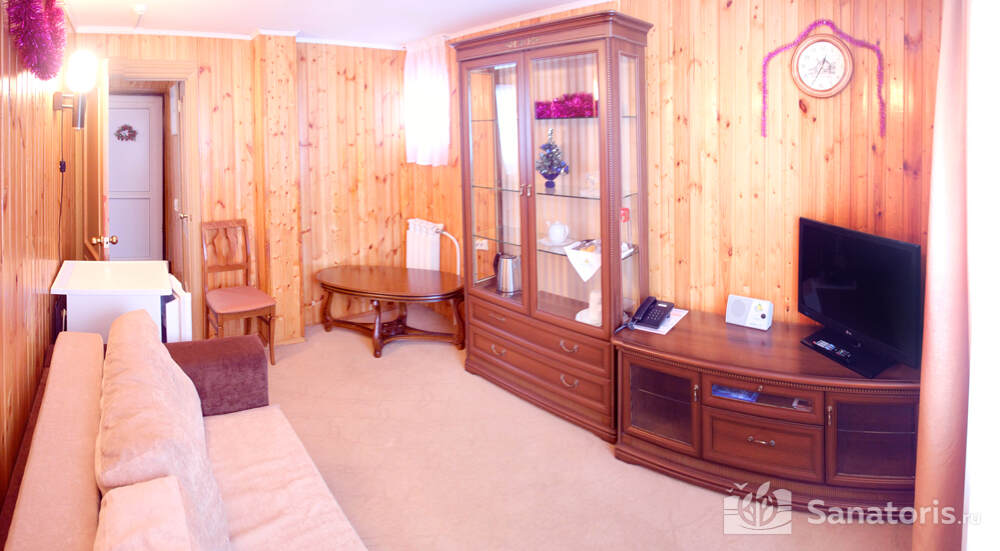 В каждом номере предусмотрен плазменный телевизор, небольшой холодильник и сейф. В корпусе №14 санузел и душ находятся на этаже. Остальные корпуса и отдельно стоящие коттеджи предполагают наличие удобств в номере. Хорошо продуманный дизайн апартаментов отличается функциональностью. Все детали максимально продуманы и лаконичны.