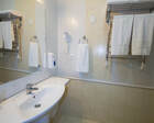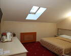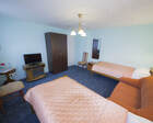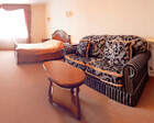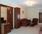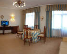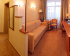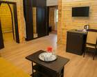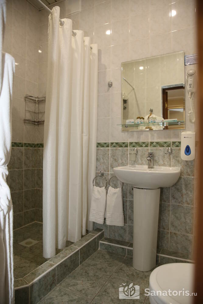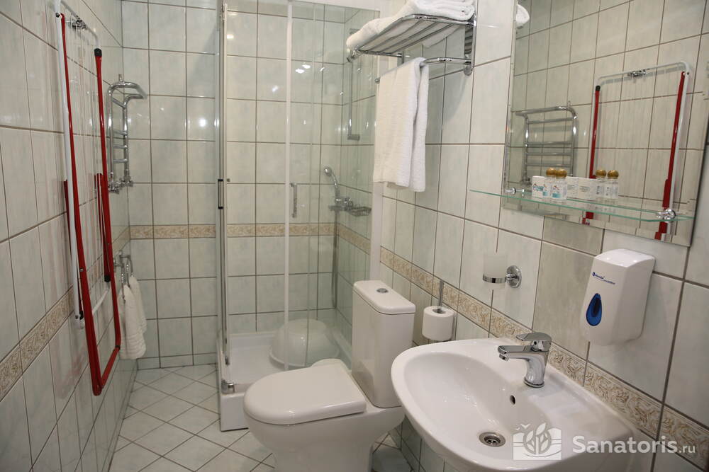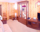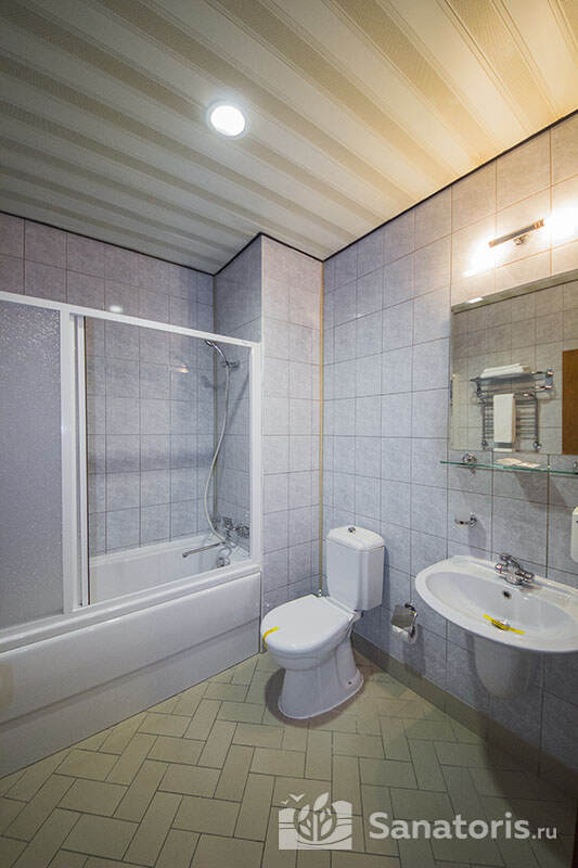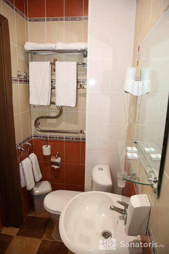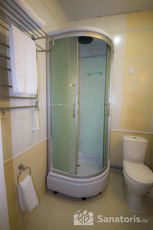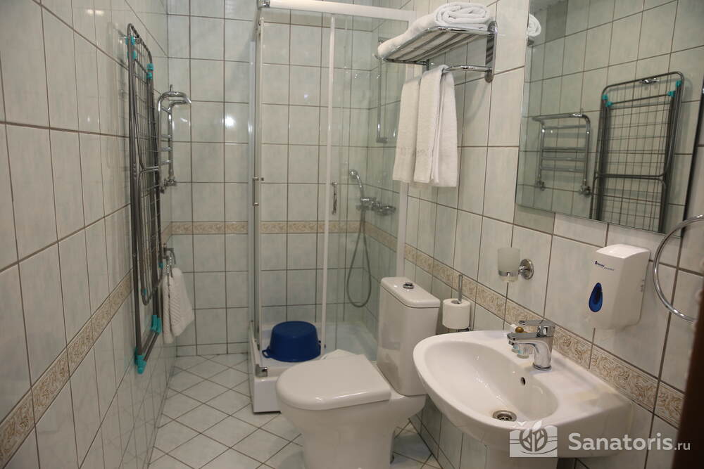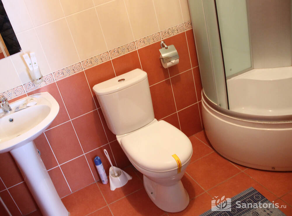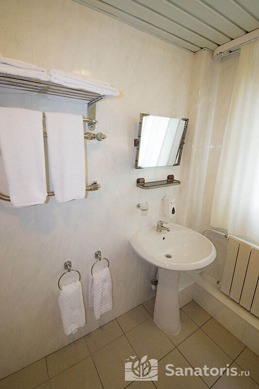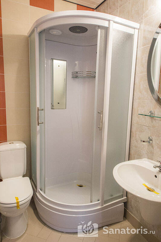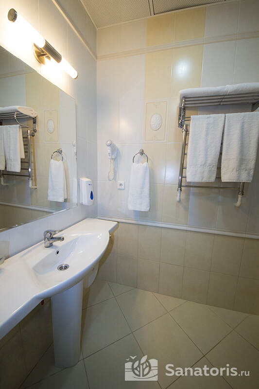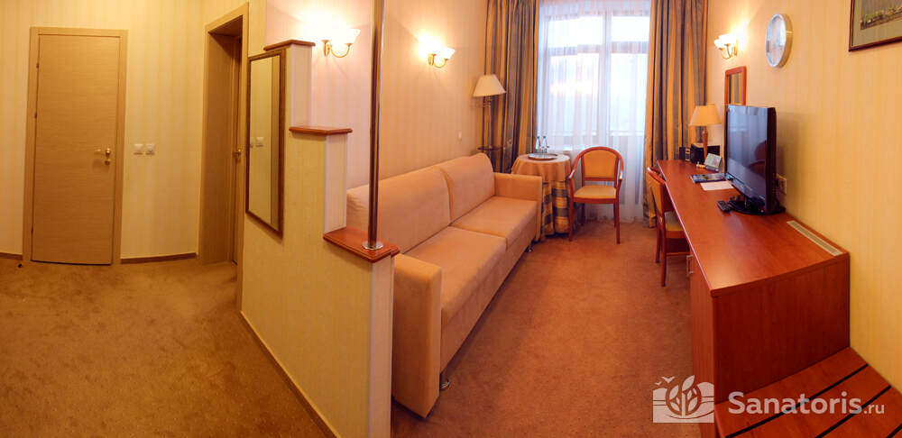 В каждом номере предусмотрен плазменный телевизор, небольшой холодильник и сейф. В корпусе №14 санузел и душ находятся на этаже. Остальные корпуса и отдельно стоящие коттеджи предполагают наличие удобств в номере. Хорошо продуманный дизайн апартаментов отличается функциональностью. Все детали максимально продуманы и лаконичны.