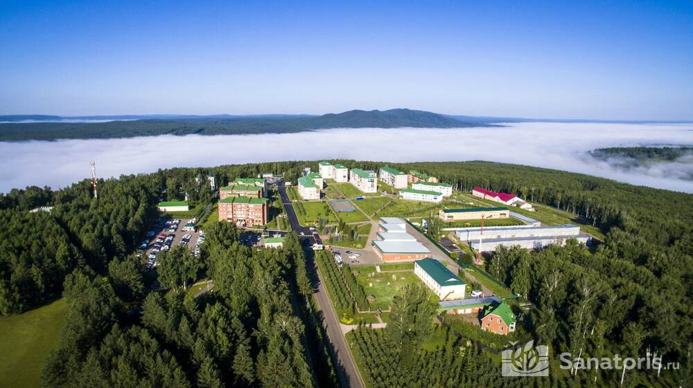Объект состоит их двух отдельно стоящих сооружений, которые отдельно размещены на территории. Расстояние между корпусами составляет полтора километра. Вокруг обоих зданий произрастает великолепный лес. Расположили санатории на величественной горе. В шаговой доступности находится конный клуб и лечебный источник минеральной воды.