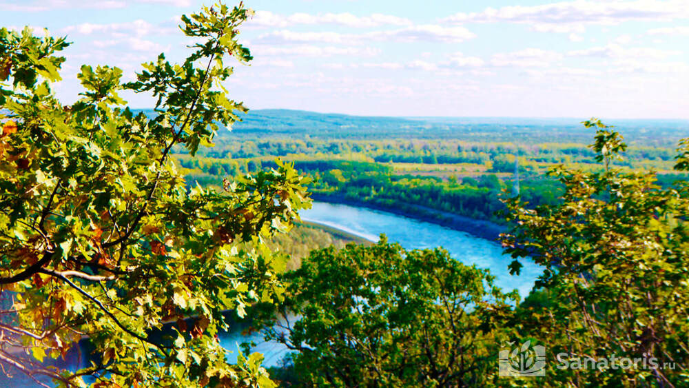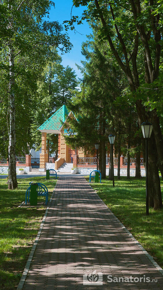 Прилежащая к здравнице территория являет собою лесопарковую зону. Постояльцы могут прогуливаться по ухоженным аллеям, наслаждать ароматом цветов или отдохнуть в уютной беседке. Рядом протекает речка Уфа, есть множество уникальных локаций. Например, юрта, фонтан желаний и многое другое.