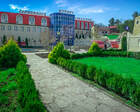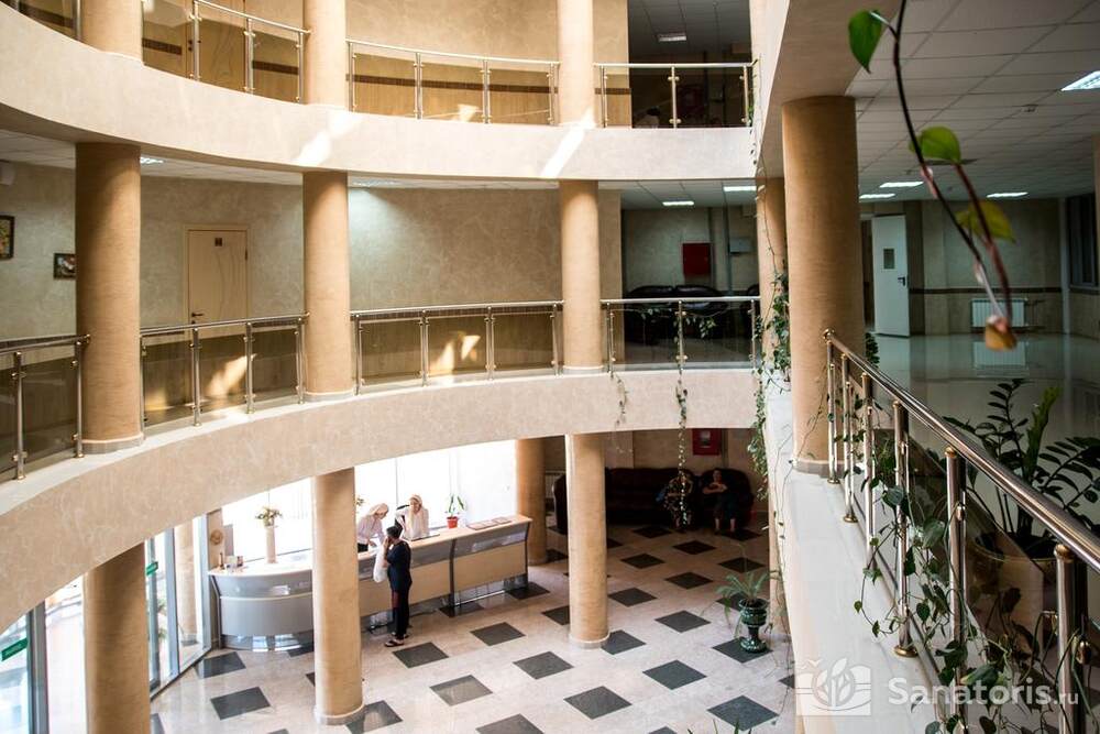 Территория вблизи санатория полностью благоустроена. Здесь имеются освежающие в летнюю жару фонтаны, а также скамейки для отдыха. Корпус здравницы состоит из шести этажей. Отдельно возвышаются корпуса, где осуществляется питание и организуется лечебный процесс.