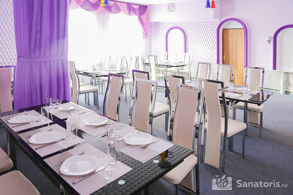 На территории санатория функционирует ресторан, где постояльцы могут сделать заказ на завтрак, обед и ужин.