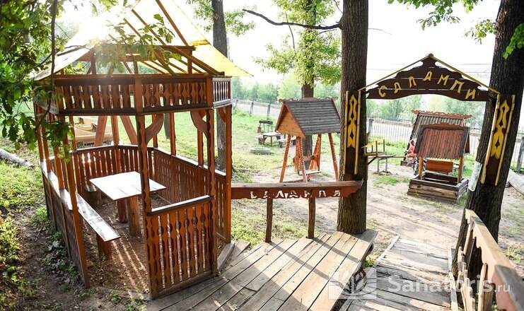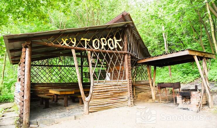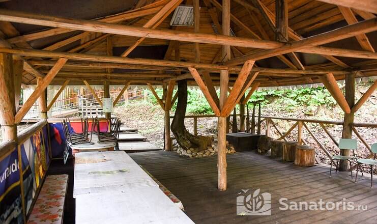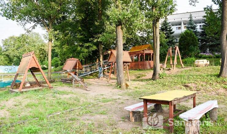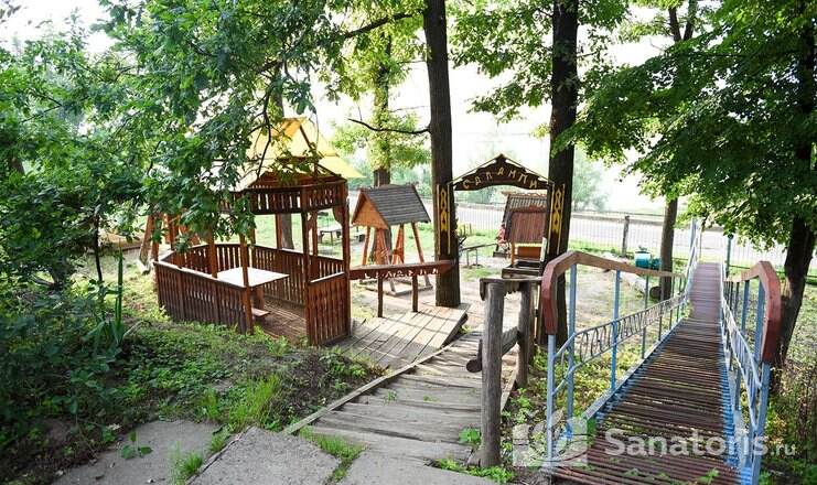 На ухоженной территории здравницы есть зоны отдыха с мангалами и беседками. Юные гости могут порезвиться на игровой площадке или в детской комнате.