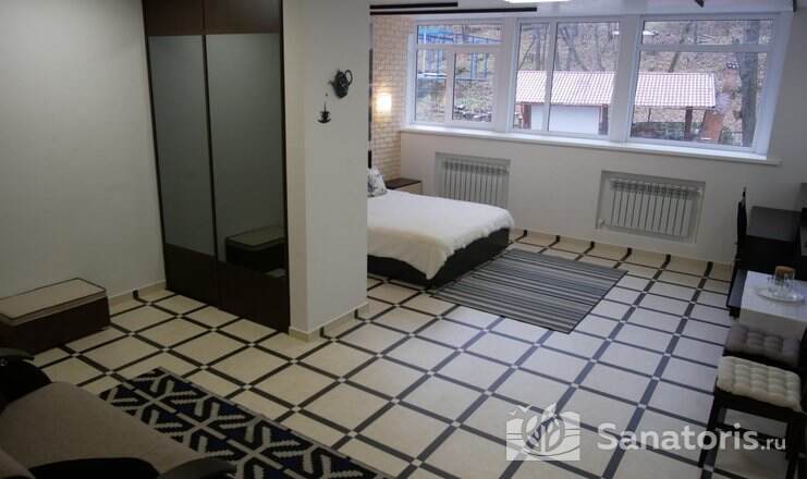 Для размещения туристов предусмотрен главный корпус. Так же есть ресторан и лечебный корпус. Кроме номеров в спальном корпусе можно арендовать современный коттедж.