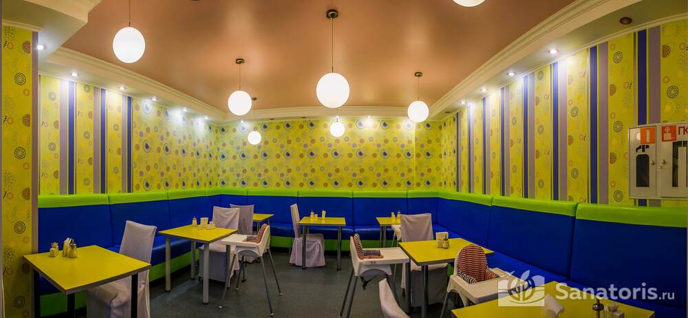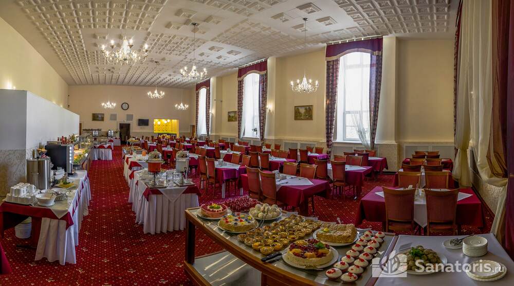 Питание организовано по системе «all inclusive». Гости могут не ограничивать свои гастрономические потребности, находясь на отдыхе. В ресторане санатория осуществляется 3-разовое питание посетителей. Помимо этого, гости на протяжении дня могут пить напитки и пробовать разного рода закуски. С 9 часов вечера отдыхающим доступны алкогольные напитки.