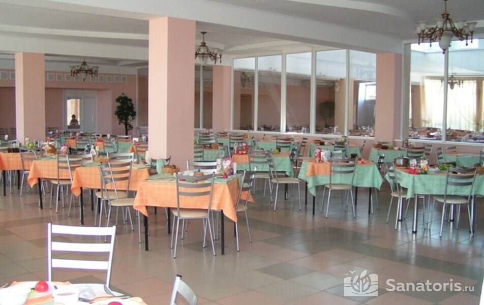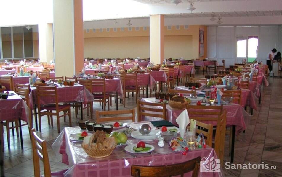 Питание в санатории организовано по системе полного пансиона. Трехразовое комплексное меню учитывает особенности диет, рекомендованных при различных заболеваниях. По желанию гостей со второго дня пребывания вводится диетическое заказное меню, которое подбирается врачом с учетом основного заболевания.