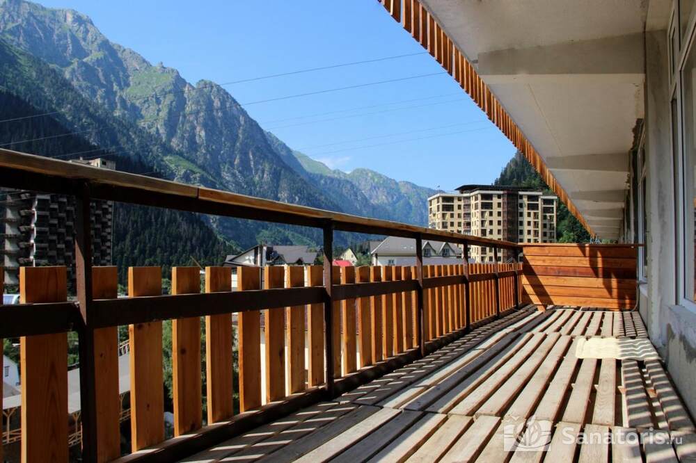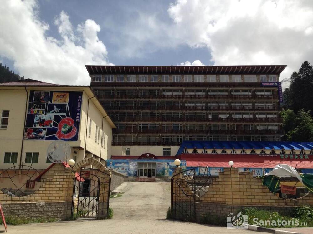 Пансионат «Домбай» находится в Карачаево-Черкессии, поселок Домбай. Расстояние до столицы республики составляет 110 километров. Неподалеку работает шикарный ресторан, кафе, продуктовые лавки, горнолыжные базы. Вся необходимая инфраструктура находится в шаговой доступности.