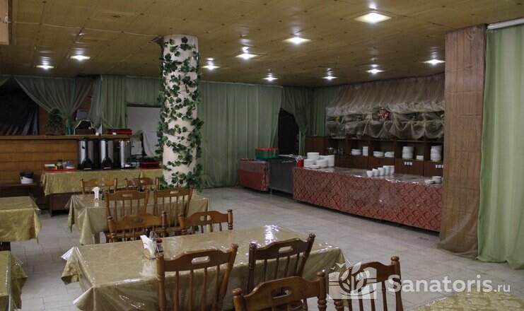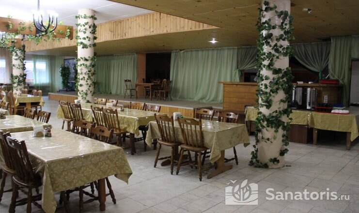 Питание осуществляется в большом обеденном зале. Предоставляется комплексное питание. На территории оздоровительного комплекса есть зона отдыха с мангалами и барбекю.