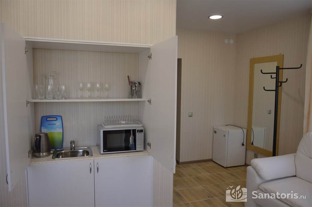 Комплекс санатория состоит из нескольких зданий. Два жилых помещения соединяются между собой лечебными отделениями, столовой и переходами. Это очень удобно для отдыхающих, особенно пожилого возраста. Еще один спальный корпус располагается в пол сотни метрах. Он функционирует с 2009 года и имеет наиболее современную и развитую инфраструктуру.