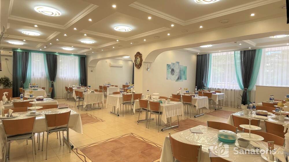 Столовая с обеденным залом довольно вместительная. Здесь предлагается как комплексное питание, так и блюда диетического лечебного стола. В качестве развлекательных мероприятий здравница предлагает: