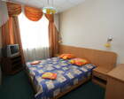 Питание постояльцев проводится в большой столовой. Так же есть охраняемая парковка. Имеются номера разной вместительности. В каждом из них есть санная комната, туалет, телевизор, холодильник, современная мебель и балкон.