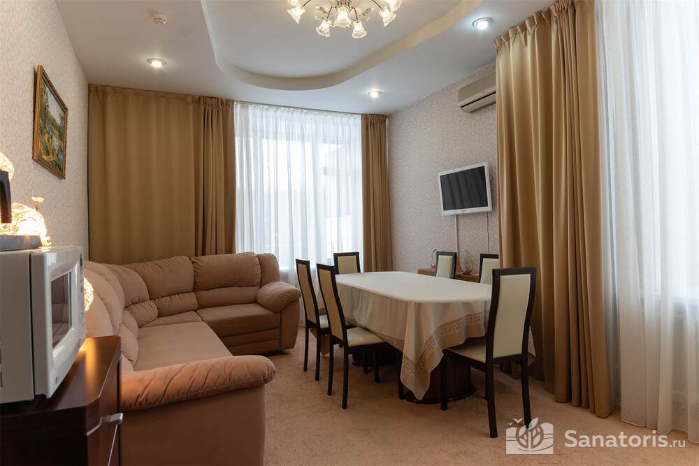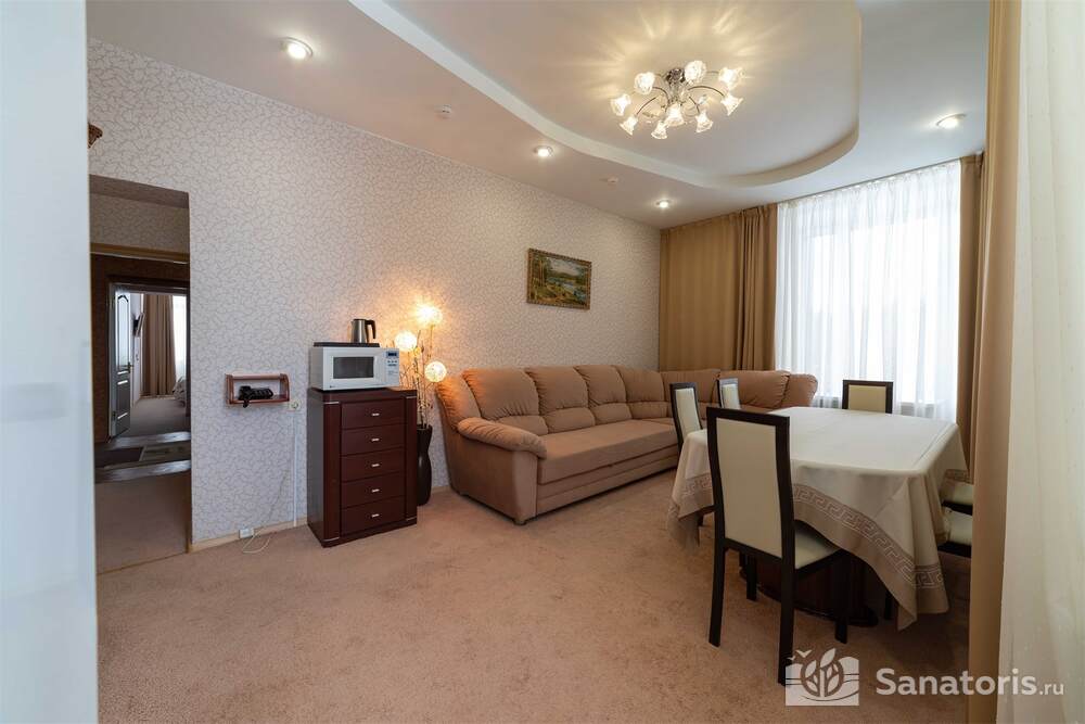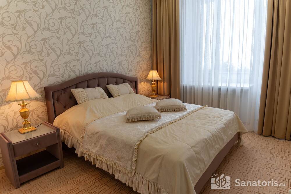 За один приезд санаторий готов вместить более четырехсот человек. Номера имеются четырех категорий. При этом в каждом из них имеется холодильник и телевизор, а также душевая кабина. В номерах категории люкс можно найти джакузи либо отдельную сауну.