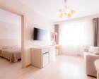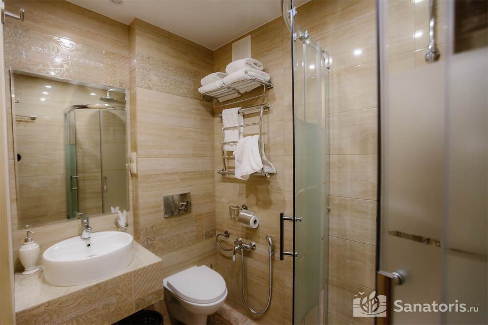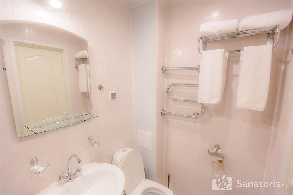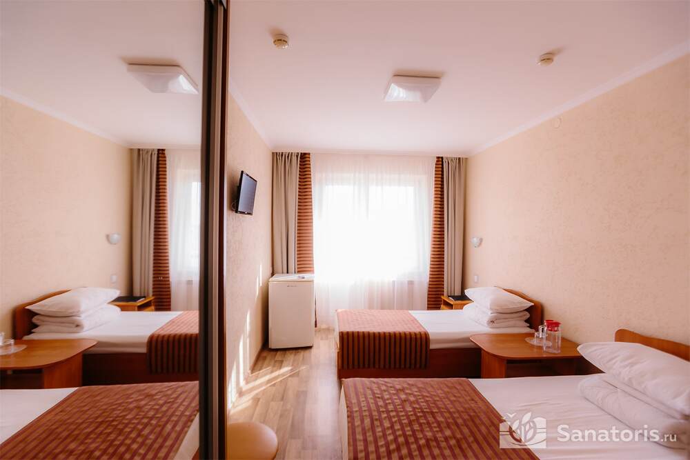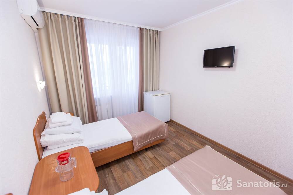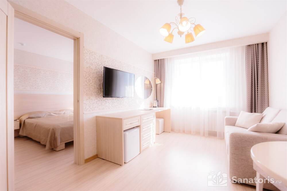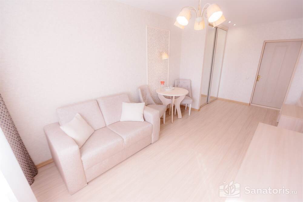 Одновременно в здравницу можно заселить 460 постояльцев. Для их проживания предусмотрены апартаменты разной вместительности и уровня комфорта. Все номера оформлены в современном стиле. Приятные светлые тона создают атмосферу уюта. Во всех номерах есть ванная комната, туалет, небольшой холодильник. В апартаментах класса «комфорт» установлена система кондиционирования.