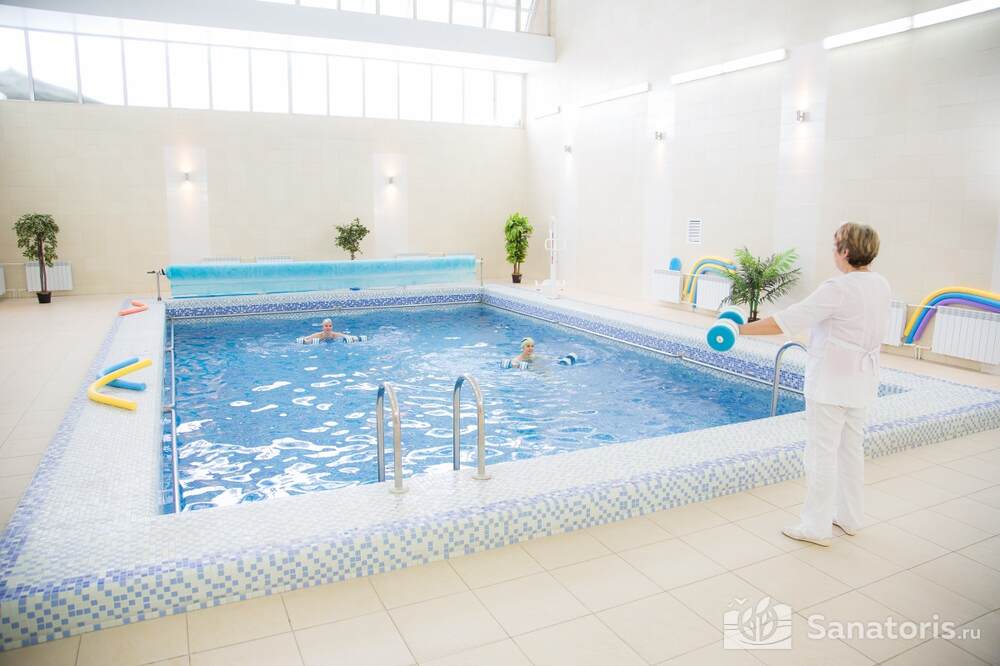 В медицинском корпусе есть бассейн, кабинет лечебной физкультуры, сауна, зал с тренажерами. Гости санатория могут посещать занятия по аквааэробике. Опытные инструкторы помогут освоить лечебные упражнения.