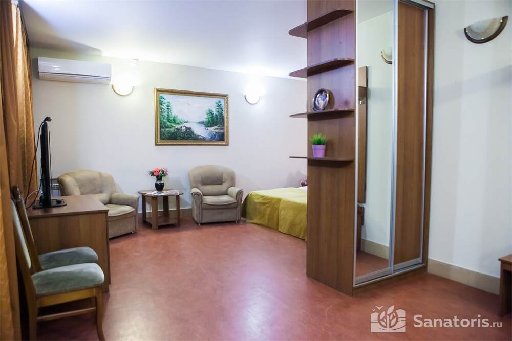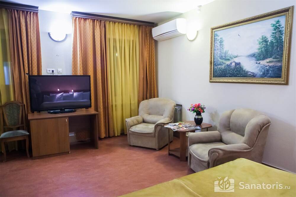 Номера санатория уютные и комфортные. В них есть все необходимое, чтобы отдых прошел по высшему класс. При этом имеется возможность подключения бесплатного интернета.