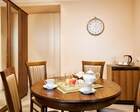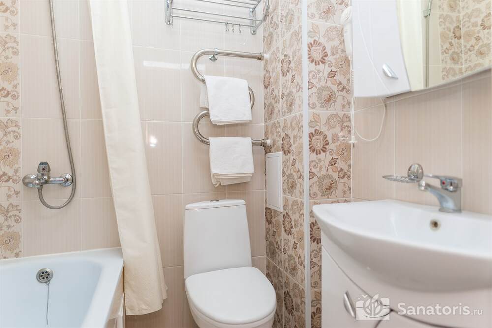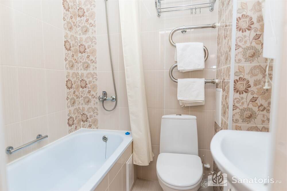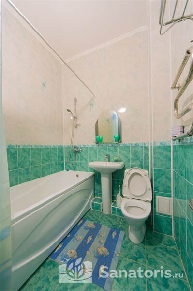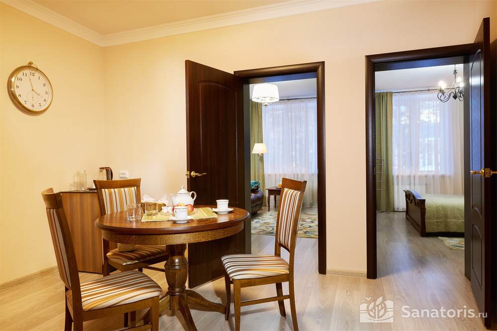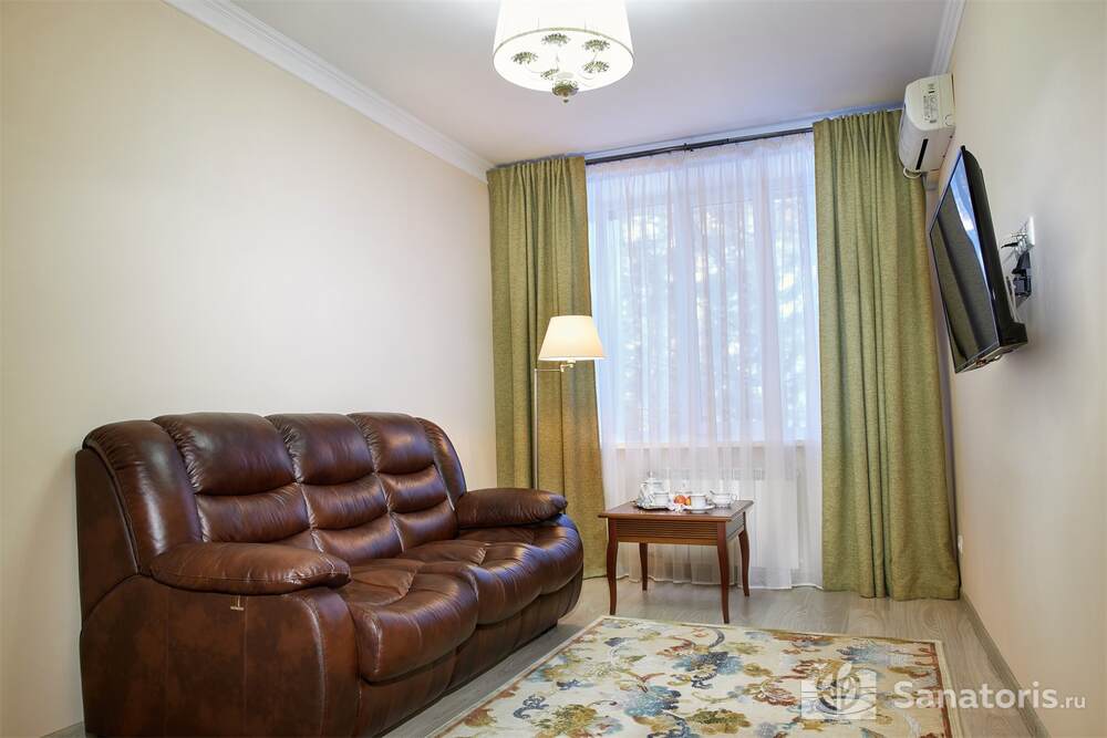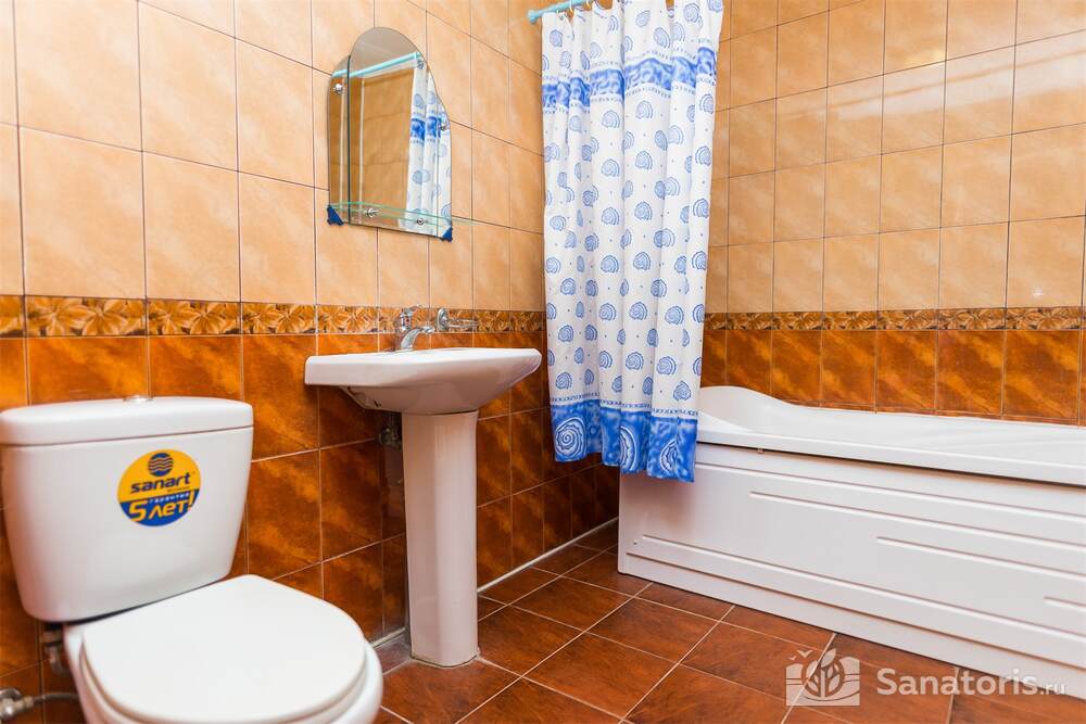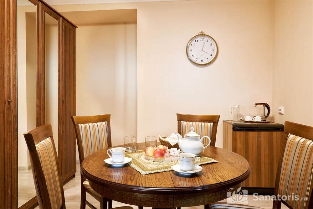 Номера трех категорий. В каждом имеется холодильник, чайник, фен, телевизор. Все что необходимо для комфортного пребывания отдыхающих. Питание организуется три раза в день. Для досуга предлагается зал с тренажерами, вместительный бассейн, баня русского типа.
