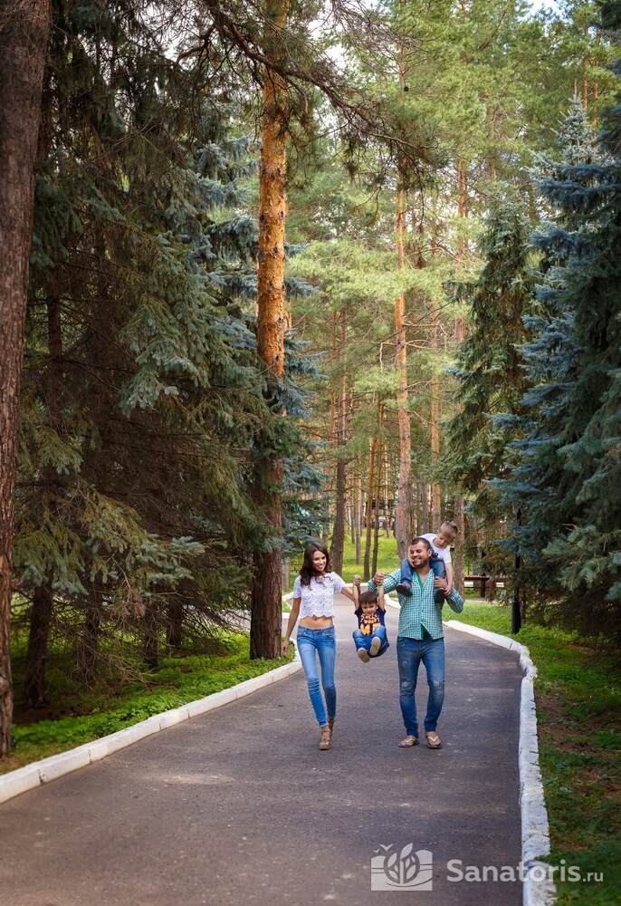 Весь санаторный комплекс представлен семью жилыми корпусами с двумя или тремя этажами. Отдельно возвышается лечебный трехэтажный блок, а также административное здание. К нему прилагается конюшня, спортивный зал и ресторан.