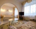 Одновременно в отеле может проживать 280 людей. Для них предусмотрены номера разной вместительности. Есть стандартные комнаты, а так же апартаменты класса «Люкс». Во всех номерах имеется санузел, ванная комната, спутниковое телевидение, холодильник, Интернет. Балконы некоторых номеров открывают прекрасный вид на парковую зону.