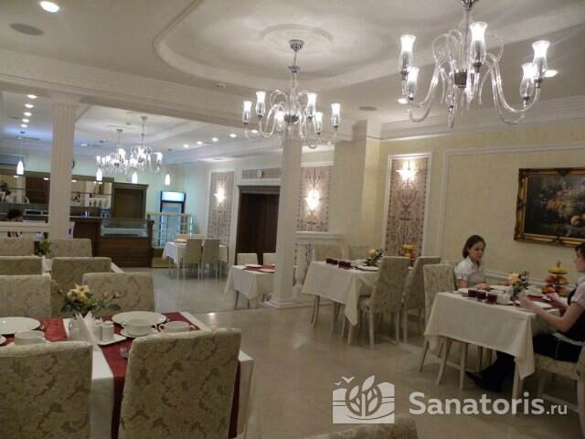 Питание постояльцев обеспечивается в большой столовой пять раз в сутки по системе заказного меню. Все блюда готовятся исключительно из натуральных продуктов. Дополнительно работает бар и уютное кафе.