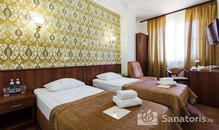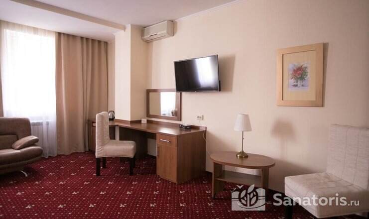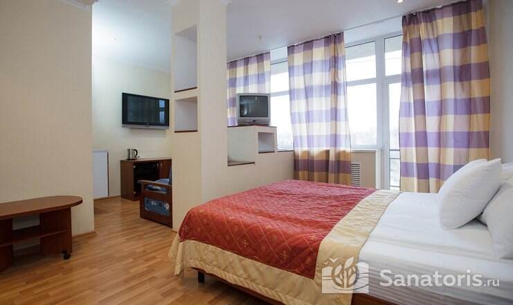 Санаторий предоставляет в пользование комфортабельные апартаменты по демократичным ценам. Постояльцам доступны разнообразные развлечения. При желании любой гость может посетить баню, бассейн, тренажёрный зал, а также прогуляться в парке и полюбоваться природной красотой. При необходимости можно взять в прокат спортивный или бытовой инвентарь.