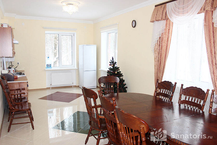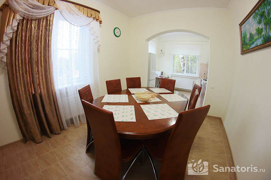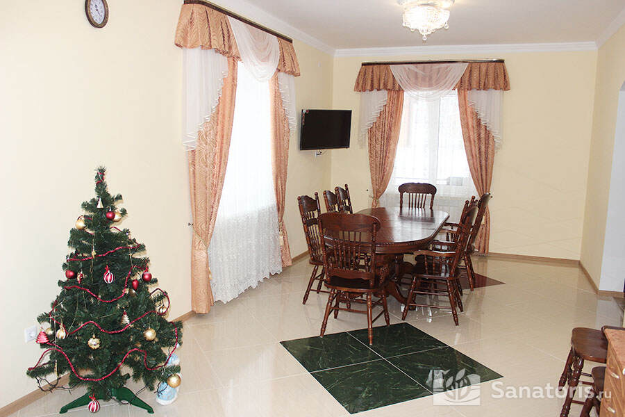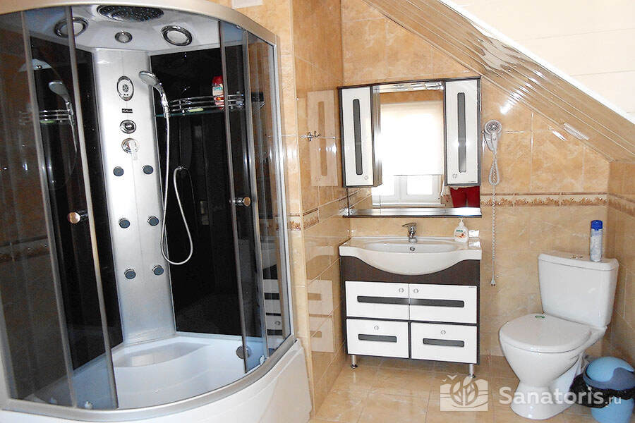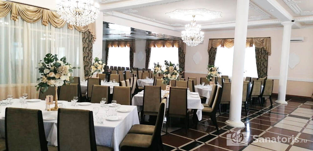 В санузлах помещений имеются душ или ванные. Питаются гости в столовой. Находится она в лечебном корпусе. В отдельном здании работает ресторан. У административного корпуса расположен бар.