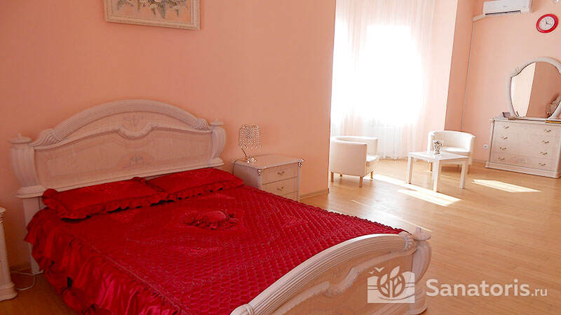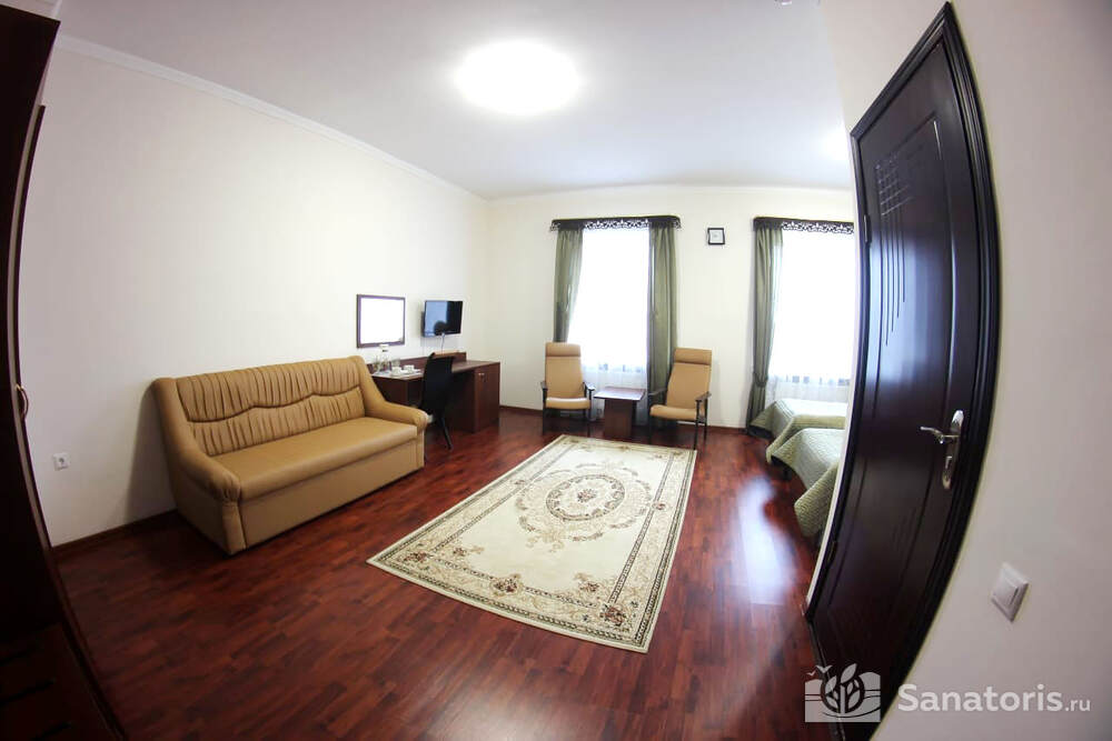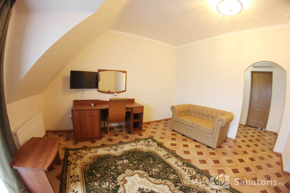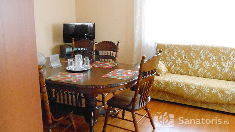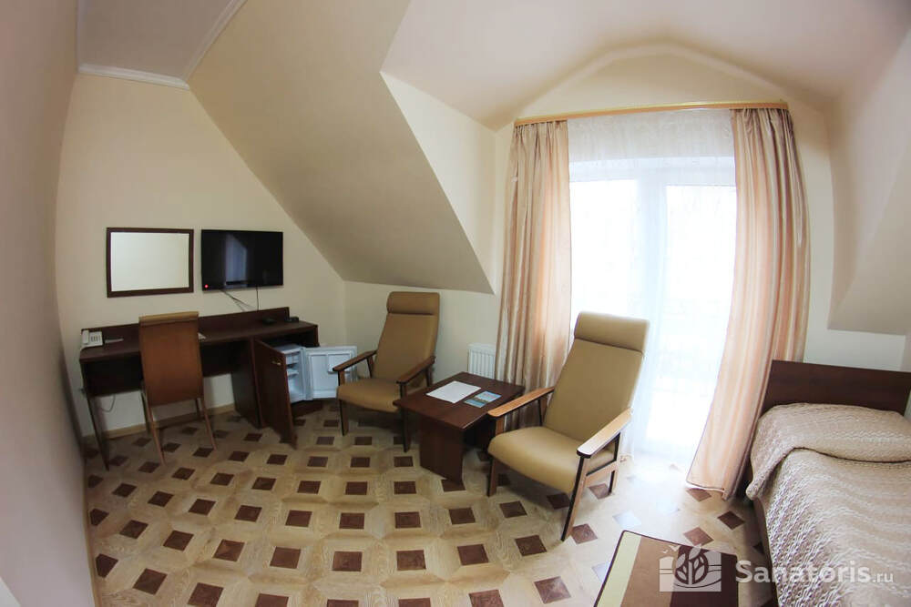 В одном из санаторных корпусов располагается лечебница. Одновременно в санатории могут разместиться более 500 персон. Номерной фонд здравницы класса «полулюкс» и «стандарт». В номерах имеются телевизоры, холодильники, фены.