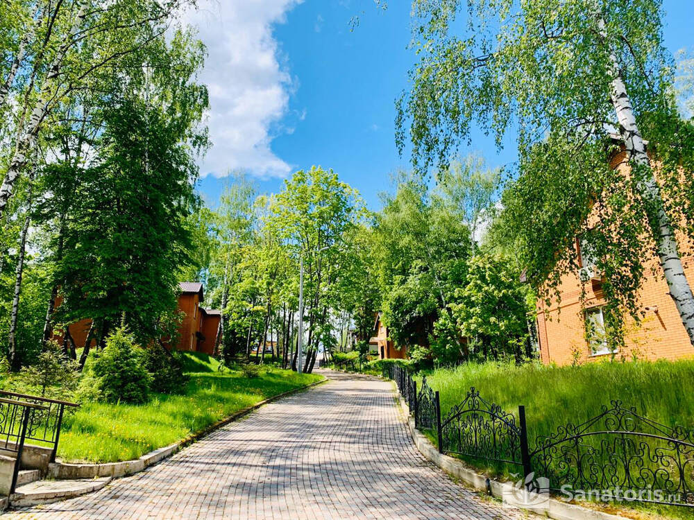 Лечебница располагается на обширной территории в 11 га. Здесь проложены дорожки для пеших прогулок, установлены уютные беседки, благоухают яблоневые сады.