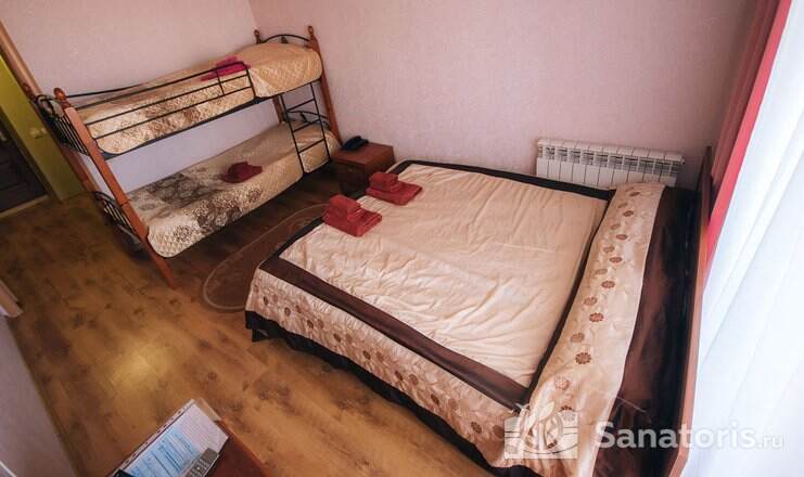 В санатории созданы хорошие условия для отдыха взрослых с детьми любого возраста. Устроена детская игровая комната с множеством занимательных развлечений (батут, настольные игры) и даже есть отдельная детская столовая. Родители могут воспользоваться услугами опытного воспитателя и веселого аниматора.