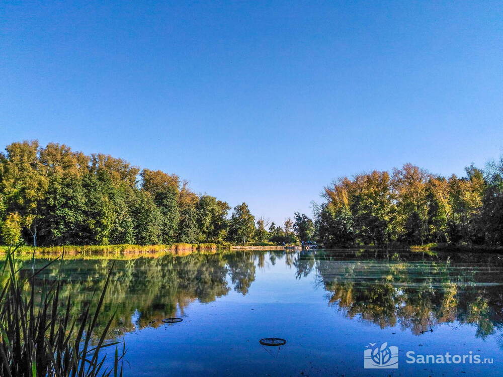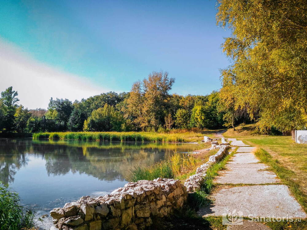 Административное здание, корпус №2 и водо- и грязелечебницы расположены в зоне Серного озера. Эта парковая территория отлично подходит для неспешных прогулок пациентов.